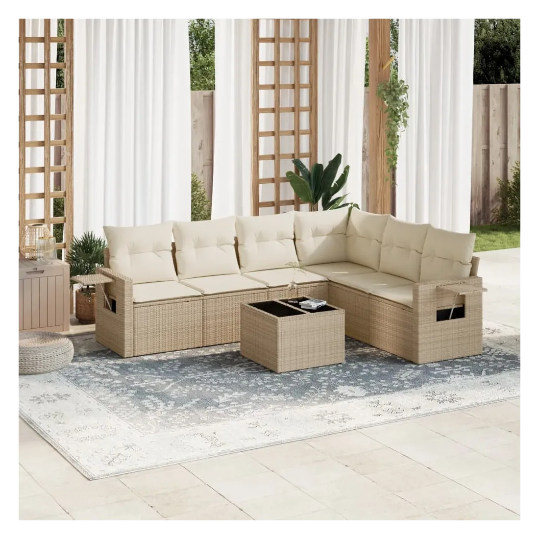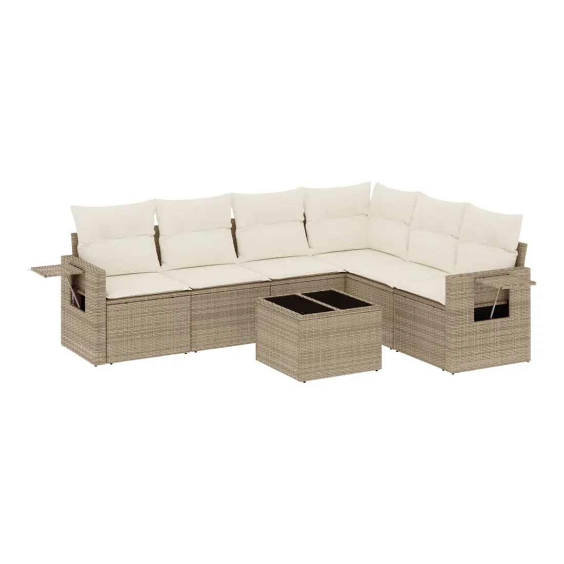 Salon de jardin avec coussins 7 pcs beige résine tressée