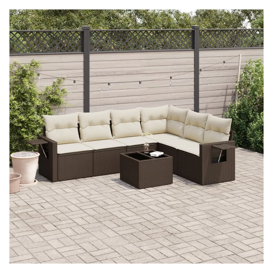 Cet ensemble de canapés de jardin est le complément parfait de votre arrière-cour, terrasse ou patio, offrant un espace confortable et accueillant pour discuter avec la famille et les amis ou simplement se détendre et profiter de l'extérieur. Matériau durable : la résine tressée, également connue sous le nom de poly rotin, est un matériau synthétique solide et nécessitant peu d'entretien qui ressemble au rotin naturel. Il est léger, facile à nettoyer et couramment utilisé pour les meubles d'extérieur en raison de sa durabilité et de ses propriétés de résistance aux intempéries.Dessus en verre : le dessus de la table d'extérieur est fabriqué en verre trempé solide et durable, ce qui le rend facile à nettoyer avec un chiffon humide et ajoute une touche d'élégance à votre espace extérieur. Table d'appoint pratique : ce mobilier d'extérieur comprend des tables d'appoint pliables avec un ressort à gaz sur les accoudoirs, offrant des endroits pratiques pour garder vos essentiels à portée de main. Expérience d'assise confortable : ce mobilier d'extérieur, doté de coussins épais, offre une expérience d'assise confortable.Conception modulaire : cet ensemble de meubles d'extérieur a une conception modulaire, ce qui le rend complètement flexible et facile à déplacer, afin que vous puissiez créer un agencement de meubles d'extérieur personnalisé. Bon à savoir :Pour que vos meubles d'extérieur restent beaux, nous vous recommandons de les protéger avec une housse imperméable.