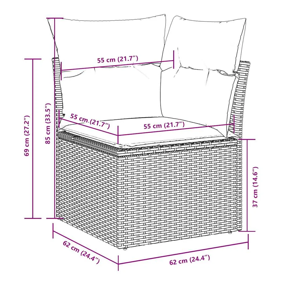 - Dimensions du coussin de siège : 55 x 55 x 3 cm (l x P x é)