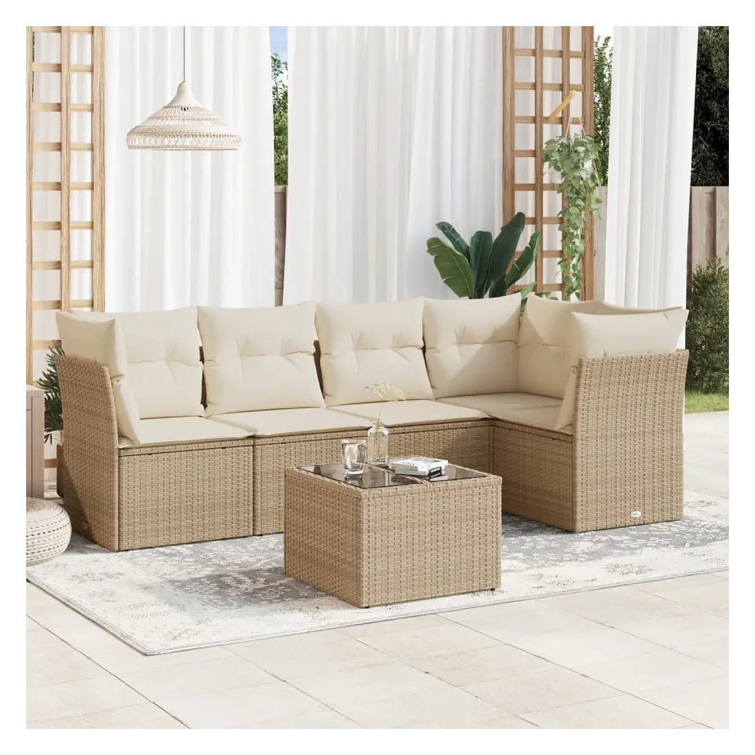 Salon de jardin avec coussins 6 pcs beige résine tressée