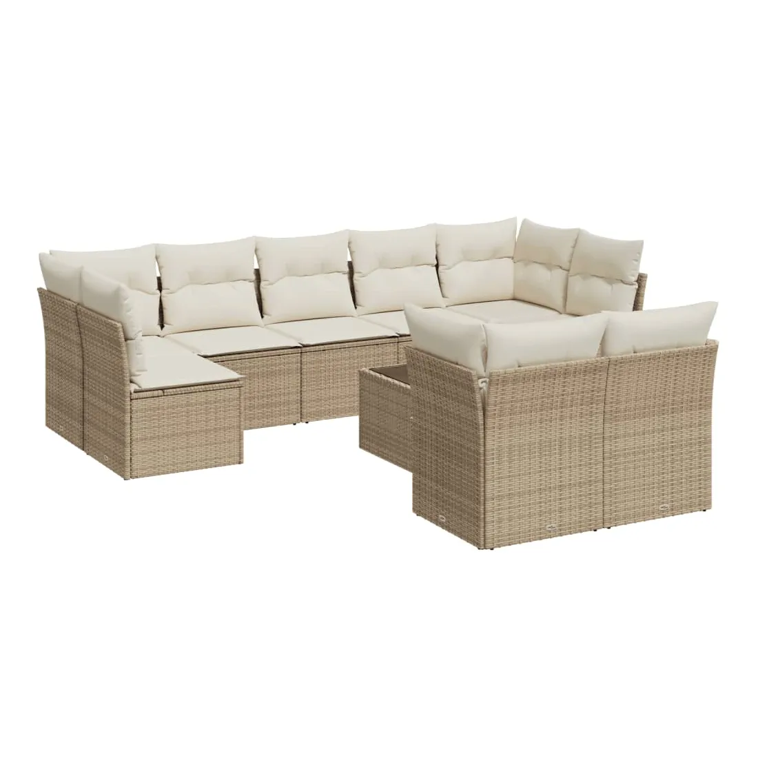 Salon de jardin avec coussins 10 pcs beige résine tressée