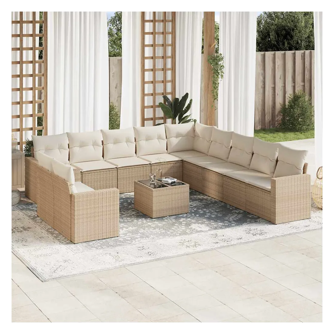 Cet ensemble de canapés de jardin est le complément parfait de votre arrière-cour, terrasse ou patio, offrant un espace confortable et accueillant pour discuter avec la famille et les amis ou simplement se détendre et profiter de l'extérieur. Matériau durable : la résine tressée, également connue sous le nom de poly rotin, est un matériau synthétique solide et nécessitant peu d'entretien qui ressemble au rotin naturel. Il est léger, facile à nettoyer et couramment utilisé pour les meubles d'extérieur en raison de sa durabilité et de ses propriétés de résistance aux intempéries.Expérience d'assise confortable : ce mobilier d'extérieur, doté de coussins épais, offre une expérience d'assise confortable. Les larges accoudoirs offrent également un endroit pratique pour garder votre téléphone portable, vos tasses ou d'autres petits objets à portée de main.Housse amovible et lavable : ces coussins de siège sont dotés de housses amovibles pour un lavage et un entretien faciles.Dessus en verre : le dessus de la table d'extérieur est fabriqué en verre trempé solide et durable, ce qui le rend facile à nettoyer avec un chiffon humide et ajoute une touche d'élégance à votre espace extérieur.Conception modulaire : cet ensemble de meubles d'extérieur a une conception modulaire, ce qui le rend complètement flexible et facile à déplacer, afin que vous puissiez créer un agencement de meubles d'extérieur personnalisé. Bon à savoir :Pour que vos meubles d'extérieur restent beaux, nous vous recommandons de les protéger avec une housse imperméable.