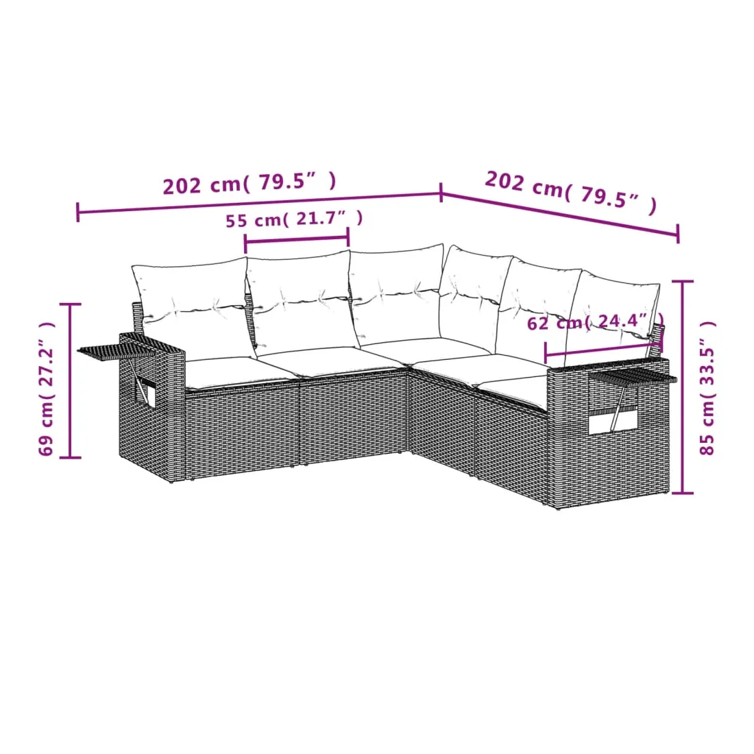Cet ensemble de canapés de jardin est le complément parfait de votre arrière-cour, terrasse ou patio, offrant un espace confortable et accueillant pour discuter avec la famille et les amis ou simplement se détendre et profiter de l'extérieur. Matériau durable : la résine tressée, également connue sous le nom de poly rotin, est un matériau synthétique solide et nécessitant peu d'entretien qui ressemble au rotin naturel. Il est léger, facile à nettoyer et couramment utilisé pour les meubles d'extérieur en raison de sa durabilité et de ses propriétés de résistance aux intempéries. Table d'appoint pratique : ce mobilier d'extérieur comprend des tables d'appoint pliables avec un ressort à gaz sur les accoudoirs, offrant des endroits pratiques pour garder vos essentiels à portée de main. Expérience d'assise confortable : ce mobilier d'extérieur, doté de coussins épais, offre une expérience d'assise confortable. Housse amovible et lavable : ces coussins de siège sont dotés de housses amovibles pour un lavage et un entretien faciles.Conception modulaire : cet ensemble de meubles d'extérieur a une conception modulaire, ce qui le rend complètement flexible et facile à déplacer, afin que vous puissiez créer un agencement de meubles d'extérieur personnalisé. Bon à savoir :Pour que vos meubles d'extérieur restent beaux, nous vous recommandons de les protéger avec une housse imperméable.