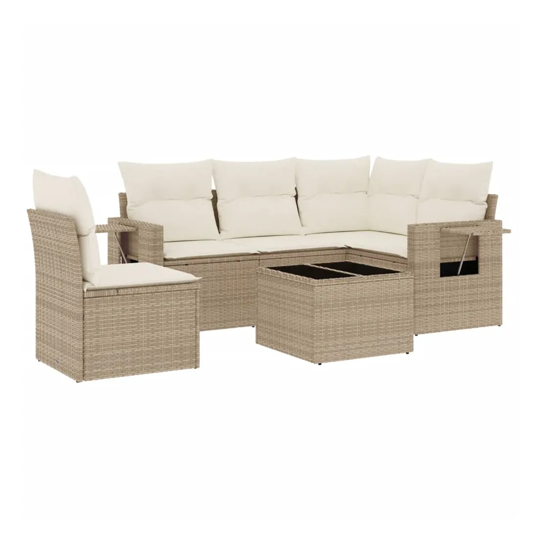 Salon de jardin avec coussins 6 pcs beige résine tressée