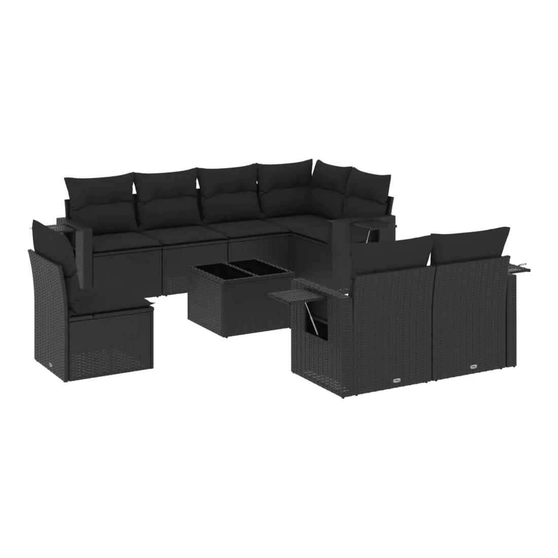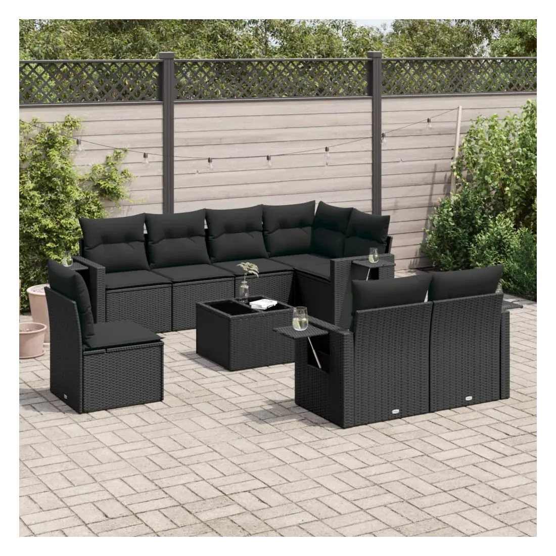 Cet ensemble de canapés de jardin est le complément parfait de votre arrière-cour, terrasse ou patio, offrant un espace confortable et accueillant pour discuter avec la famille et les amis ou simplement se détendre et profiter de l'extérieur. Matériau durable : la résine tressée, également connue sous le nom de poly rotin, est un matériau synthétique solide et nécessitant peu d'entretien qui ressemble au rotin naturel. Il est léger, facile à nettoyer et couramment utilisé pour les meubles d'extérieur en raison de sa durabilité et de ses propriétés de résistance aux intempéries.Dessus en verre : le dessus de la table d'extérieur est fabriqué en verre trempé solide et durable, ce qui le rend facile à nettoyer avec un chiffon humide et ajoute une touche d'élégance à votre espace extérieur. Table d'appoint pratique : ce mobilier d'extérieur comprend des tables d'appoint pliables avec un ressort à gaz sur les accoudoirs, offrant des endroits pratiques pour garder vos essentiels à portée de main. Expérience d'assise confortable : ce mobilier d'extérieur, doté de coussins épais, offre une expérience d'assise confortable.Conception modulaire : cet ensemble de meubles d'extérieur a une conception modulaire, ce qui le rend complètement flexible et facile à déplacer, afin que vous puissiez créer un agencement de meubles d'extérieur personnalisé. Bon à savoir :Pour que vos meubles d'extérieur restent beaux, nous vous recommandons de les protéger avec une housse imperméable.
