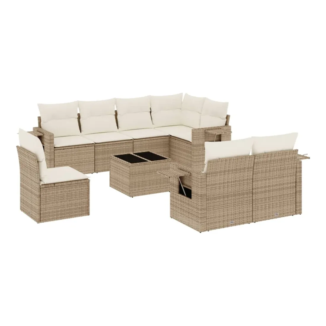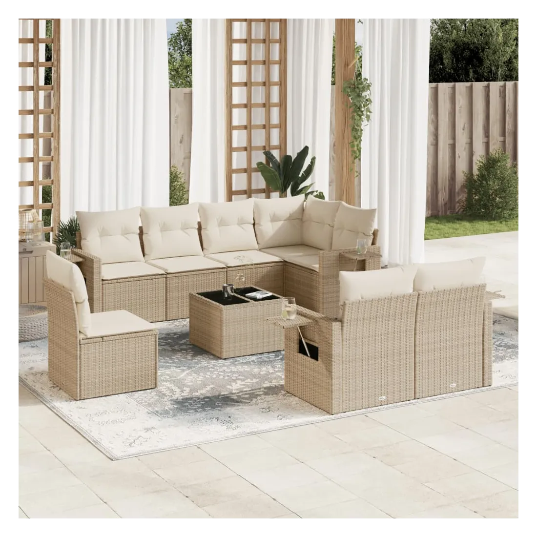 Cet ensemble de canapés de jardin est le complément parfait de votre arrière-cour, terrasse ou patio, offrant un espace confortable et accueillant pour discuter avec la famille et les amis ou simplement se détendre et profiter de l'extérieur. Matériau durable : la résine tressée, également connue sous le nom de poly rotin, est un matériau synthétique solide et nécessitant peu d'entretien qui ressemble au rotin naturel. Il est léger, facile à nettoyer et couramment utilisé pour les meubles d'extérieur en raison de sa durabilité et de ses propriétés de résistance aux intempéries.Dessus en verre : le dessus de la table d'extérieur est fabriqué en verre trempé solide et durable, ce qui le rend facile à nettoyer avec un chiffon humide et ajoute une touche d'élégance à votre espace extérieur. Table d'appoint pratique : ce mobilier d'extérieur comprend des tables d'appoint pliables avec un ressort à gaz sur les accoudoirs, offrant des endroits pratiques pour garder vos essentiels à portée de main. Expérience d'assise confortable : ce mobilier d'extérieur, doté de coussins épais, offre une expérience d'assise confortable.Conception modulaire : cet ensemble de meubles d'extérieur a une conception modulaire, ce qui le rend complètement flexible et facile à déplacer, afin que vous puissiez créer un agencement de meubles d'extérieur personnalisé. Bon à savoir :Pour que vos meubles d'extérieur restent beaux, nous vous recommandons de les protéger avec une housse imperméable.