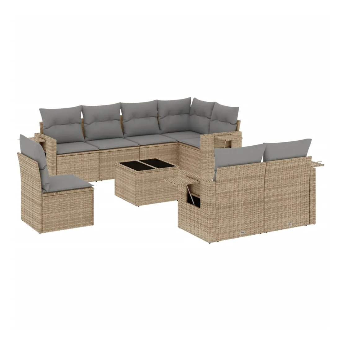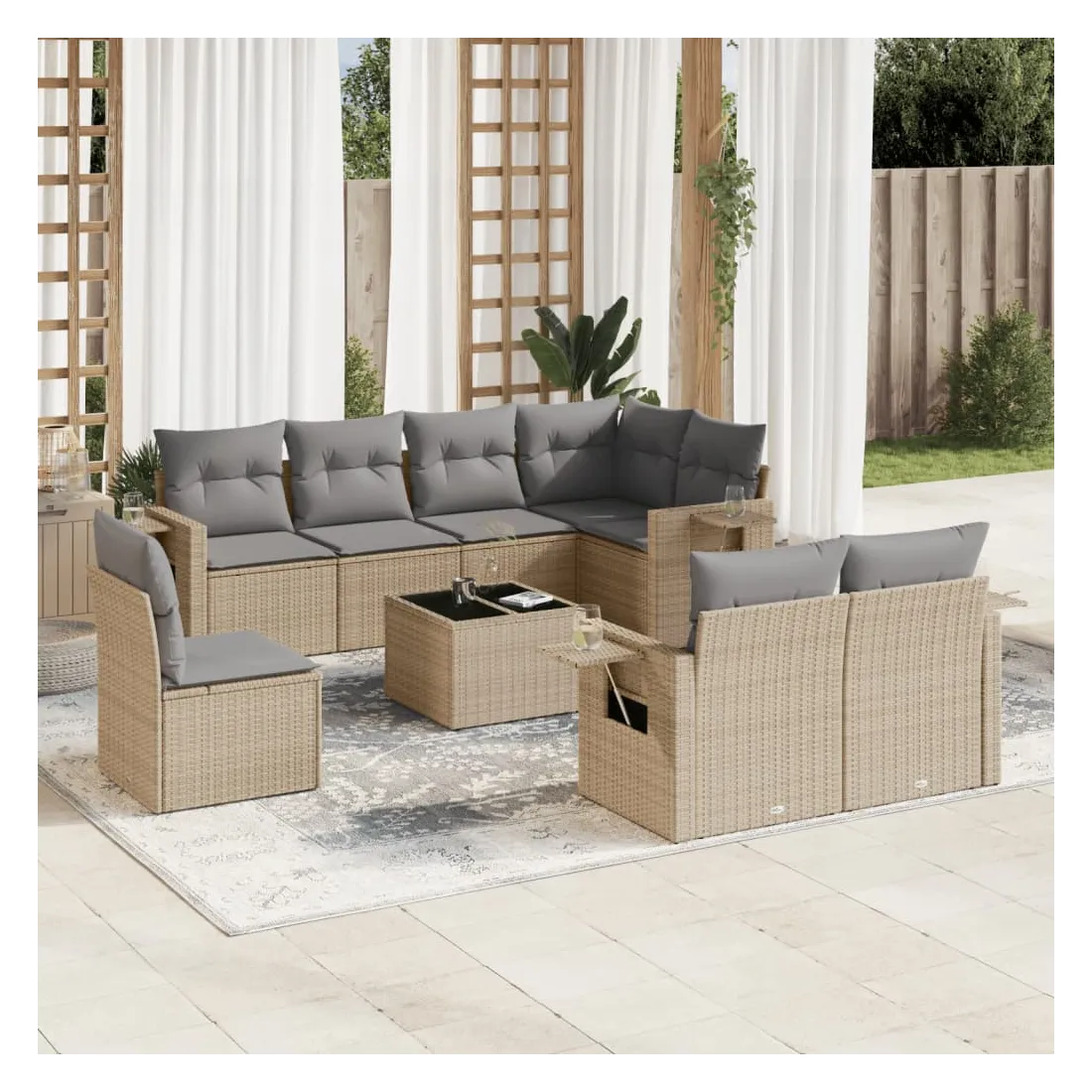 Cet ensemble de canapés de jardin est le complément parfait de votre arrière-cour, terrasse ou patio, offrant un espace confortable et accueillant pour discuter avec la famille et les amis ou simplement se détendre et profiter de l'extérieur. Matériau durable : la résine tressée, également connue sous le nom de poly rotin, est un matériau synthétique solide et nécessitant peu d'entretien qui ressemble au rotin naturel. Il est léger, facile à nettoyer et couramment utilisé pour les meubles d'extérieur en raison de sa durabilité et de ses propriétés de résistance aux intempéries.Dessus en verre : le dessus de la table d'extérieur est fabriqué en verre trempé solide et durable, ce qui le rend facile à nettoyer avec un chiffon humide et ajoute une touche d'élégance à votre espace extérieur. Table d'appoint pratique : ce mobilier d'extérieur comprend des tables d'appoint pliables avec un ressort à gaz sur les accoudoirs, offrant des endroits pratiques pour garder vos essentiels à portée de main. Expérience d'assise confortable : ce mobilier d'extérieur, doté de coussins épais, offre une expérience d'assise confortable.Conception modulaire : cet ensemble de meubles d'extérieur a une conception modulaire, ce qui le rend complètement flexible et facile à déplacer, afin que vous puissiez créer un agencement de meubles d'extérieur personnalisé. Bon à savoir :Pour que vos meubles d'extérieur restent beaux, nous vous recommandons de les protéger avec une housse imperméable.