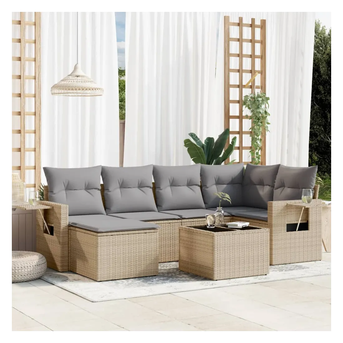 Cet ensemble de canapés de jardin est le complément parfait de votre arrière-cour, terrasse ou patio, offrant un espace confortable et accueillant pour discuter avec la famille et les amis ou simplement se détendre et profiter de l'extérieur. Matériau durable : la résine tressée, également connue sous le nom de poly rotin, est un matériau synthétique solide et nécessitant peu d'entretien qui ressemble au rotin naturel. Il est léger, facile à nettoyer et couramment utilisé pour les meubles d'extérieur en raison de sa durabilité et de ses propriétés de résistance aux intempéries.Dessus en verre : le dessus de la table d'extérieur est fabriqué en verre trempé solide et durable, ce qui le rend facile à nettoyer avec un chiffon humide et ajoute une touche d'élégance à votre espace extérieur. Table d'appoint pratique : ce mobilier d'extérieur comprend des tables d'appoint pliables avec un ressort à gaz sur les accoudoirs, offrant des endroits pratiques pour garder vos essentiels à portée de main. Expérience d'assise confortable : ce mobilier d'extérieur, doté de coussins épais, offre une expérience d'assise confortable.Conception modulaire : cet ensemble de meubles d'extérieur a une conception modulaire, ce qui le rend complètement flexible et facile à déplacer, afin que vous puissiez créer un agencement de meubles d'extérieur personnalisé. Bon à savoir :Pour que vos meubles d'extérieur restent beaux, nous vous recommandons de les protéger avec une housse imperméable.