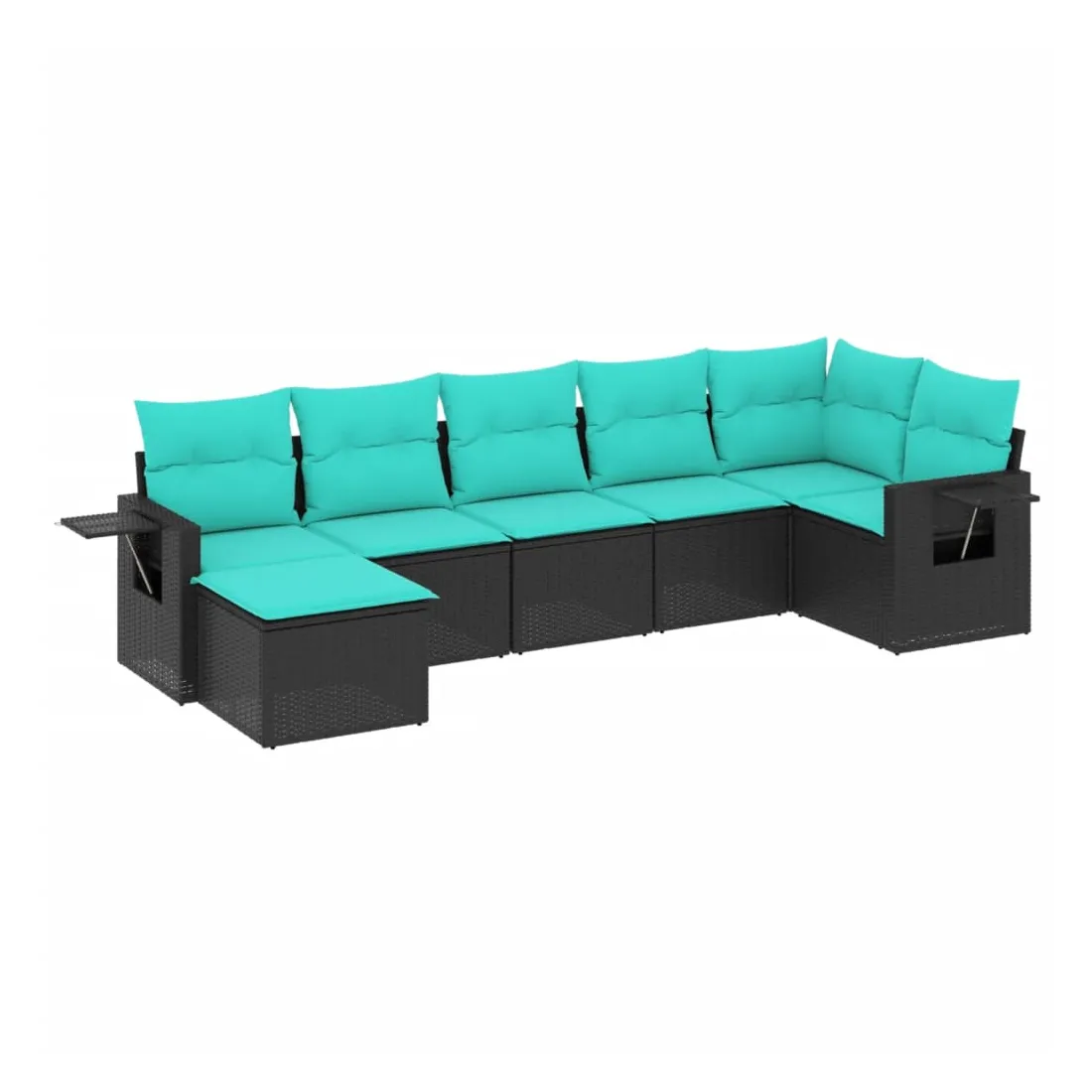 Salon de jardin 7 pcs avec coussins noir résine tressée