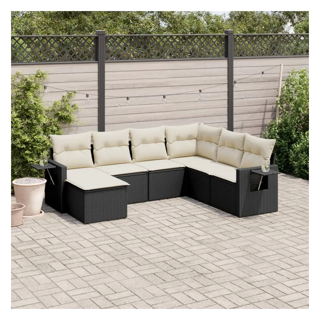 Cet ensemble de canapés de jardin est le complément parfait de votre arrière-cour, terrasse ou patio, offrant un espace confortable et accueillant pour discuter avec la famille et les amis ou simplement se détendre et profiter de l'extérieur. Matériau durable : la résine tressée, également connue sous le nom de poly rotin, est un matériau synthétique solide et nécessitant peu d'entretien qui ressemble au rotin naturel. Il est léger, facile à nettoyer et couramment utilisé pour les meubles d'extérieur en raison de sa durabilité et de ses propriétés de résistance aux intempéries. Table d'appoint pratique : ce mobilier d'extérieur comprend des tables d'appoint pliables avec un ressort à gaz sur les accoudoirs, offrant des endroits pratiques pour garder vos essentiels à portée de main. Expérience d'assise confortable : ce mobilier d'extérieur, doté de coussins épais, offre une expérience d'assise confortable. Housse amovible et lavable : ces coussins de siège sont dotés de housses amovibles pour un lavage et un entretien faciles.Conception modulaire : cet ensemble de meubles d'extérieur a une conception modulaire, ce qui le rend complètement flexible et facile à déplacer, afin que vous puissiez créer un agencement de meubles d'extérieur personnalisé. Bon à savoir :Pour que vos meubles d'extérieur restent beaux, nous vous recommandons de les protéger avec une housse imperméable.