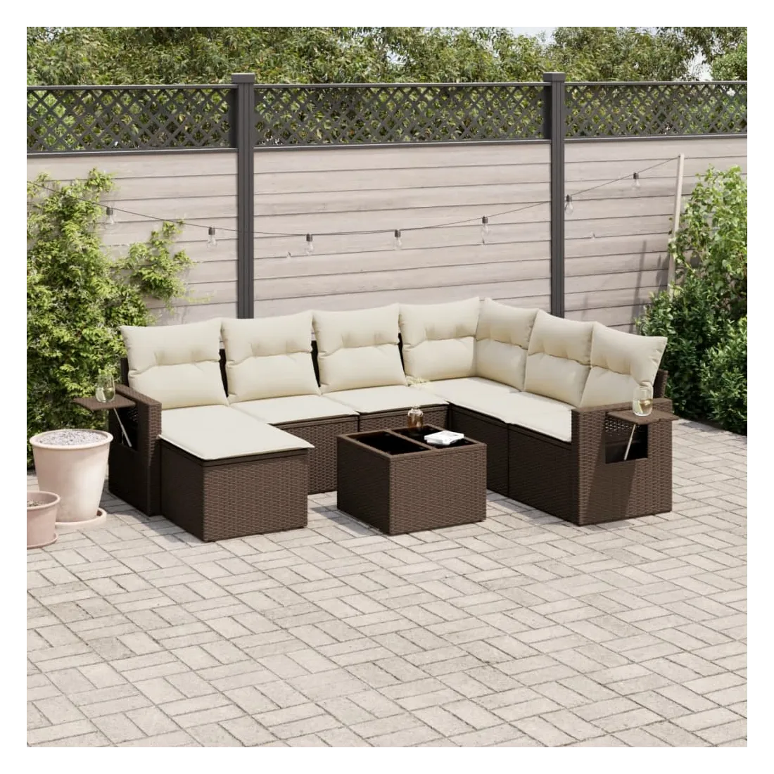 Cet ensemble de canapés de jardin est le complément parfait de votre arrière-cour, terrasse ou patio, offrant un espace confortable et accueillant pour discuter avec la famille et les amis ou simplement se détendre et profiter de l'extérieur. Matériau durable : la résine tressée, également connue sous le nom de poly rotin, est un matériau synthétique solide et nécessitant peu d'entretien qui ressemble au rotin naturel. Il est léger, facile à nettoyer et couramment utilisé pour les meubles d'extérieur en raison de sa durabilité et de ses propriétés de résistance aux intempéries.Dessus en verre : le dessus de la table d'extérieur est fabriqué en verre trempé solide et durable, ce qui le rend facile à nettoyer avec un chiffon humide et ajoute une touche d'élégance à votre espace extérieur. Table d'appoint pratique : ce mobilier d'extérieur comprend des tables d'appoint pliables avec un ressort à gaz sur les accoudoirs, offrant des endroits pratiques pour garder vos essentiels à portée de main. Expérience d'assise confortable : ce mobilier d'extérieur, doté de coussins épais, offre une expérience d'assise confortable.Conception modulaire : cet ensemble de meubles d'extérieur a une conception modulaire, ce qui le rend complètement flexible et facile à déplacer, afin que vous puissiez créer un agencement de meubles d'extérieur personnalisé. Bon à savoir :Pour que vos meubles d'extérieur restent beaux, nous vous recommandons de les protéger avec une housse imperméable.