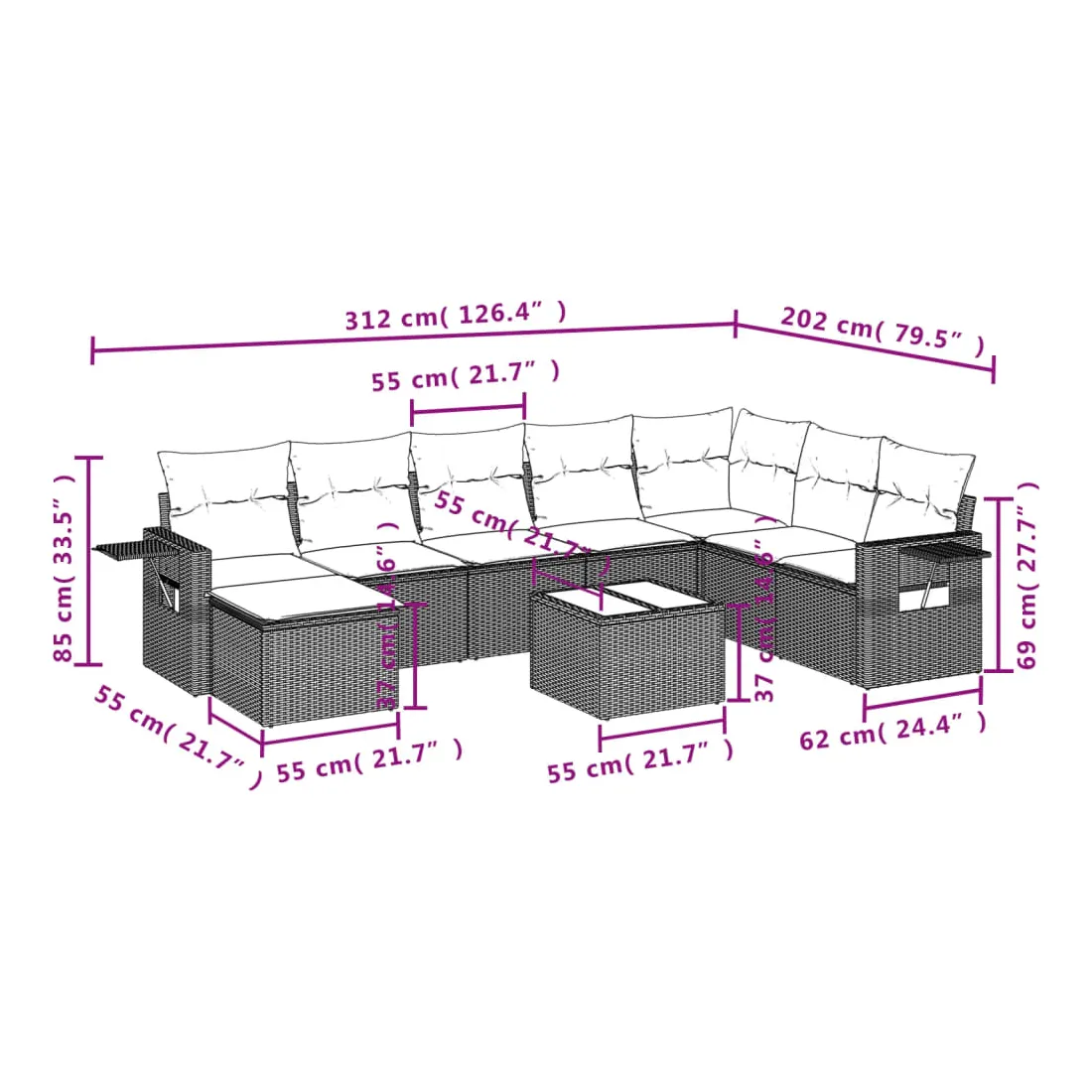 Cet ensemble de canapés de jardin est le complément parfait de votre arrière-cour, terrasse ou patio, offrant un espace confortable et accueillant pour discuter avec la famille et les amis ou simplement se détendre et profiter de l'extérieur. Matériau durable : la résine tressée, également connue sous le nom de poly rotin, est un matériau synthétique solide et nécessitant peu d'entretien qui ressemble au rotin naturel. Il est léger, facile à nettoyer et couramment utilisé pour les meubles d'extérieur en raison de sa durabilité et de ses propriétés de résistance aux intempéries.Dessus en verre : le dessus de la table d'extérieur est fabriqué en verre trempé solide et durable, ce qui le rend facile à nettoyer avec un chiffon humide et ajoute une touche d'élégance à votre espace extérieur. Table d'appoint pratique : ce mobilier d'extérieur comprend des tables d'appoint pliables avec un ressort à gaz sur les accoudoirs, offrant des endroits pratiques pour garder vos essentiels à portée de main. Expérience d'assise confortable : ce mobilier d'extérieur, doté de coussins épais, offre une expérience d'assise confortable.Conception modulaire : cet ensemble de meubles d'extérieur a une conception modulaire, ce qui le rend complètement flexible et facile à déplacer, afin que vous puissiez créer un agencement de meubles d'extérieur personnalisé. Bon à savoir :Pour que vos meubles d'extérieur restent beaux, nous vous recommandons de les protéger avec une housse imperméable.