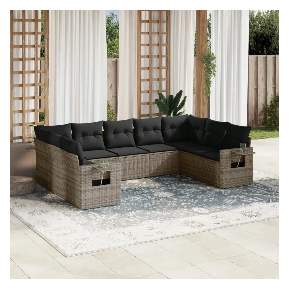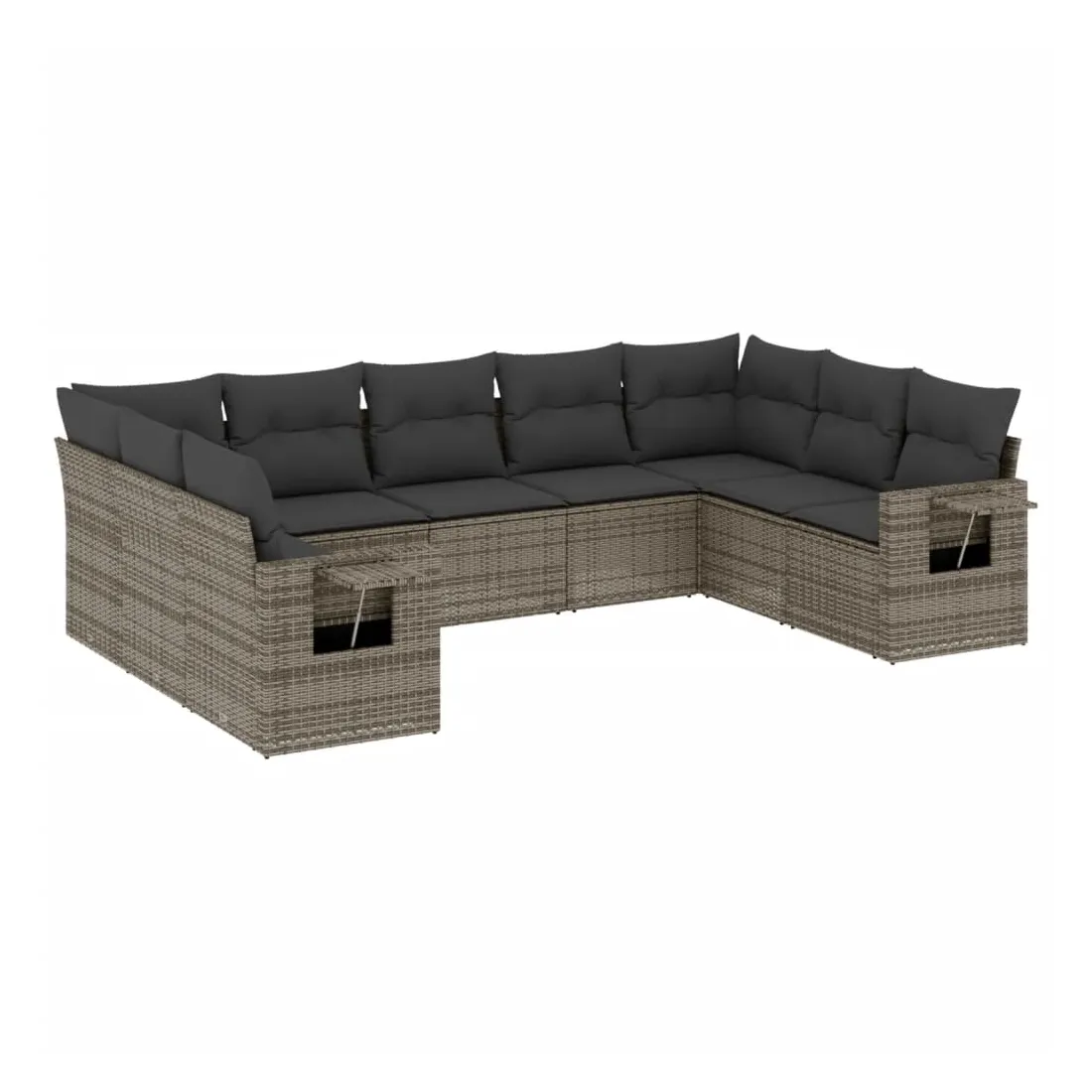 Salon de jardin 9 pcs avec coussins gris résine tressée