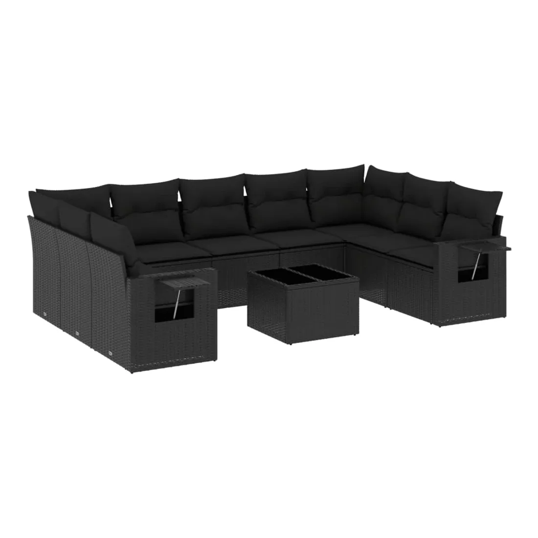 Cet ensemble de canapés de jardin est le complément parfait de votre arrière-cour, terrasse ou patio, offrant un espace confortable et accueillant pour discuter avec la famille et les amis ou simplement se détendre et profiter de l'extérieur. Matériau durable : la résine tressée, également connue sous le nom de poly rotin, est un matériau synthétique solide et nécessitant peu d'entretien qui ressemble au rotin naturel. Il est léger, facile à nettoyer et couramment utilisé pour les meubles d'extérieur en raison de sa durabilité et de ses propriétés de résistance aux intempéries.Dessus en verre : le dessus de la table d'extérieur est fabriqué en verre trempé solide et durable, ce qui le rend facile à nettoyer avec un chiffon humide et ajoute une touche d'élégance à votre espace extérieur. Table d'appoint pratique : ce mobilier d'extérieur comprend des tables d'appoint pliables avec un ressort à gaz sur les accoudoirs, offrant des endroits pratiques pour garder vos essentiels à portée de main. Expérience d'assise confortable : ce mobilier d'extérieur, doté de coussins épais, offre une expérience d'assise confortable.Conception modulaire : cet ensemble de meubles d'extérieur a une conception modulaire, ce qui le rend complètement flexible et facile à déplacer, afin que vous puissiez créer un agencement de meubles d'extérieur personnalisé. Bon à savoir :Pour que vos meubles d'extérieur restent beaux, nous vous recommandons de les protéger avec une housse imperméable.