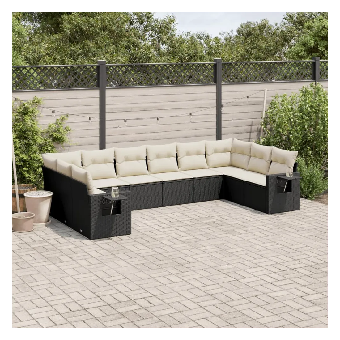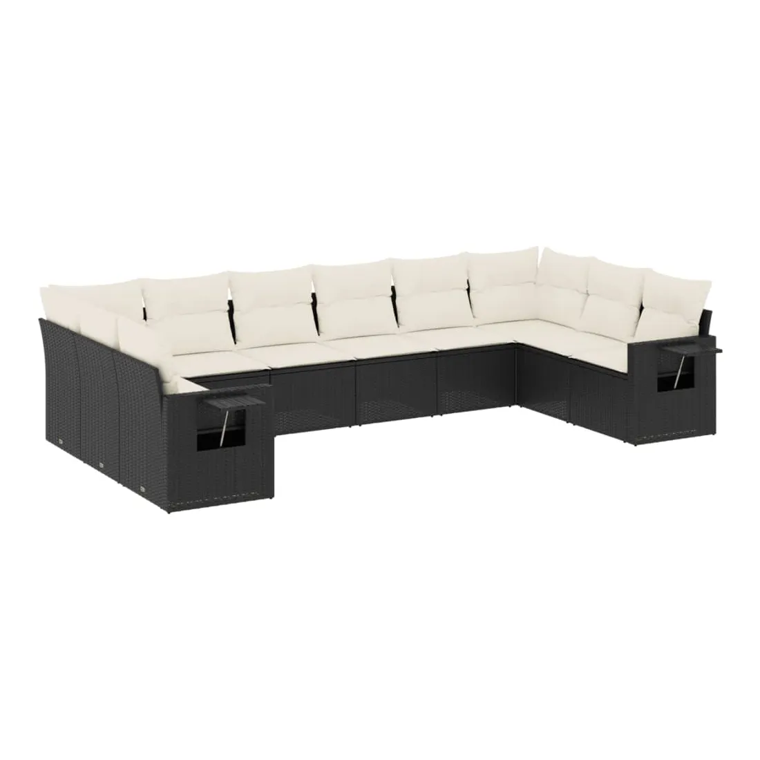 Salon de jardin 10 pcs avec coussins noir résine tressée