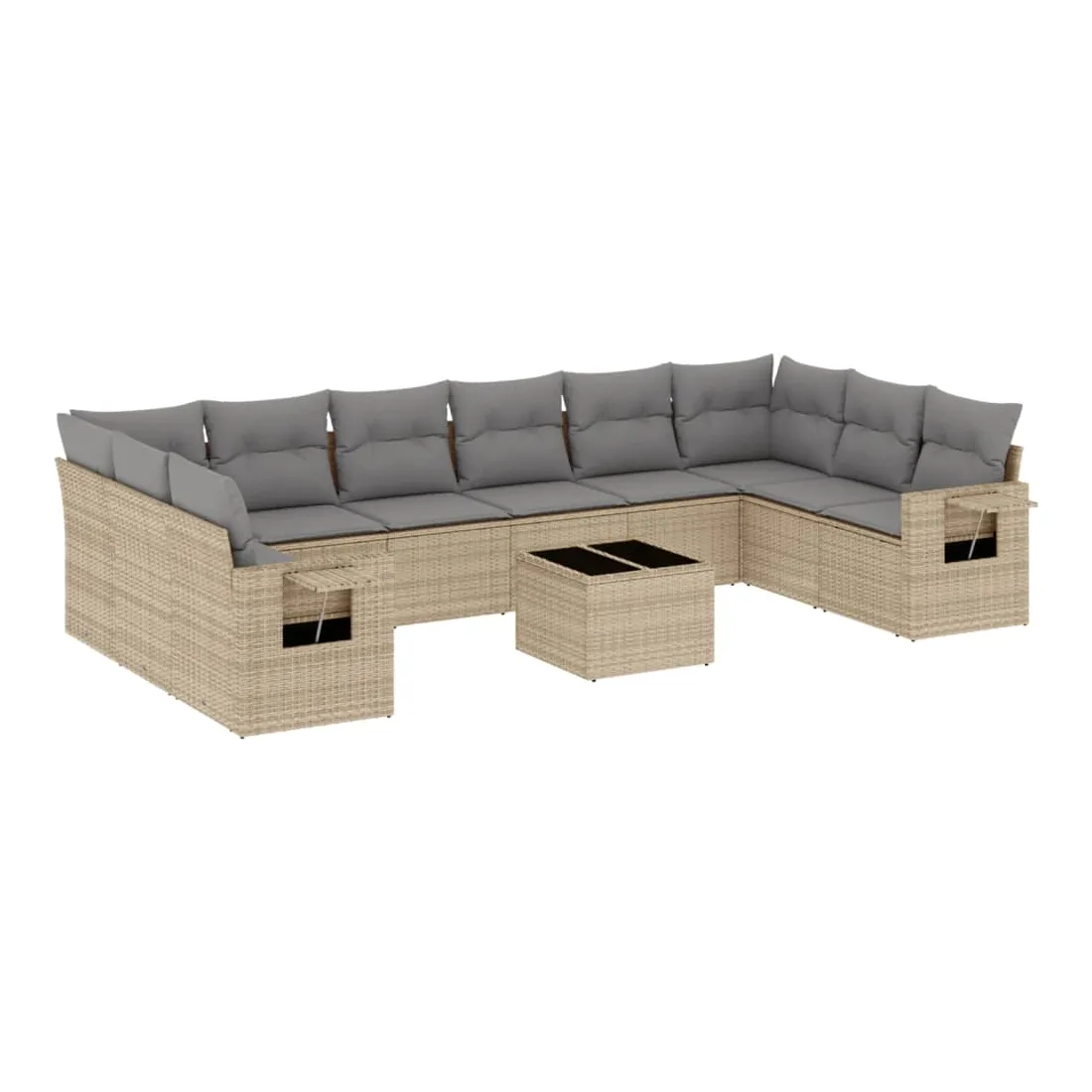 Salon de jardin 11 pcs avec coussins beige résine tressée