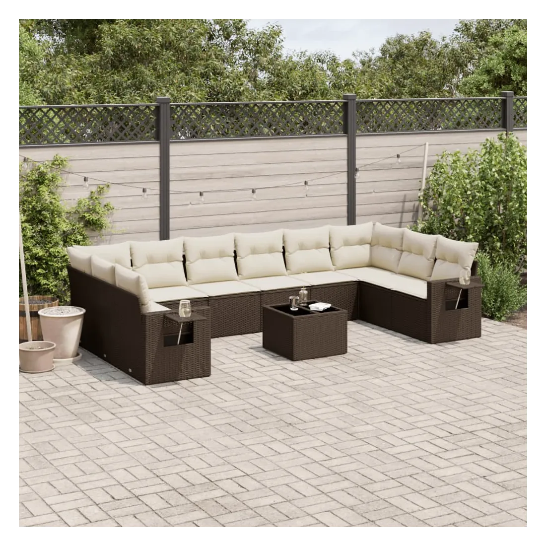 Salon de jardin et coussins 11 pcs marron résine tressée