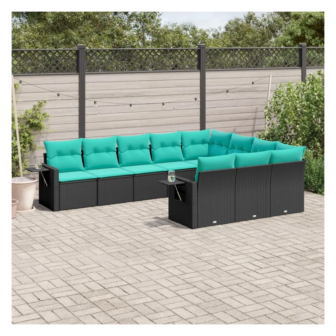 Cet ensemble de canapés de jardin est le complément parfait de votre arrière-cour, terrasse ou patio, offrant un espace confortable et accueillant pour discuter avec la famille et les amis ou simplement se détendre et profiter de l'extérieur. Matériau durable : la résine tressée, également connue sous le nom de poly rotin, est un matériau synthétique solide et nécessitant peu d'entretien qui ressemble au rotin naturel. Elle est légère, facile à nettoyer et couramment utilisée pour les meubles d'extérieur en raison de sa durabilité et de ses propriétés de résistance aux intempéries. Table d'appoint pratique : ce mobilier d'extérieur comprend des tables d'appoint pliables avec un ressort à gaz sur les accoudoirs, offrant des endroits pratiques pour garder vos essentiels à portée de main. Expérience d'assise confortable : ce mobilier d'extérieur, doté de coussins épais, offre une expérience d'assise confortable.Housse amovible et lavable : ces coussins de siège sont dotés de housses amovibles pour un lavage et un entretien faciles.Conception modulaire : cet ensemble de meubles d'extérieur a une conception modulaire, ce qui le rend complètement flexible et facile à déplacer, afin que vous puissiez créer un agencement de meubles d'extérieur personnalisé. Bon à savoir :Pour que vos meubles d'extérieur restent beaux, nous vous recommandons de les protéger avec une housse imperméable.