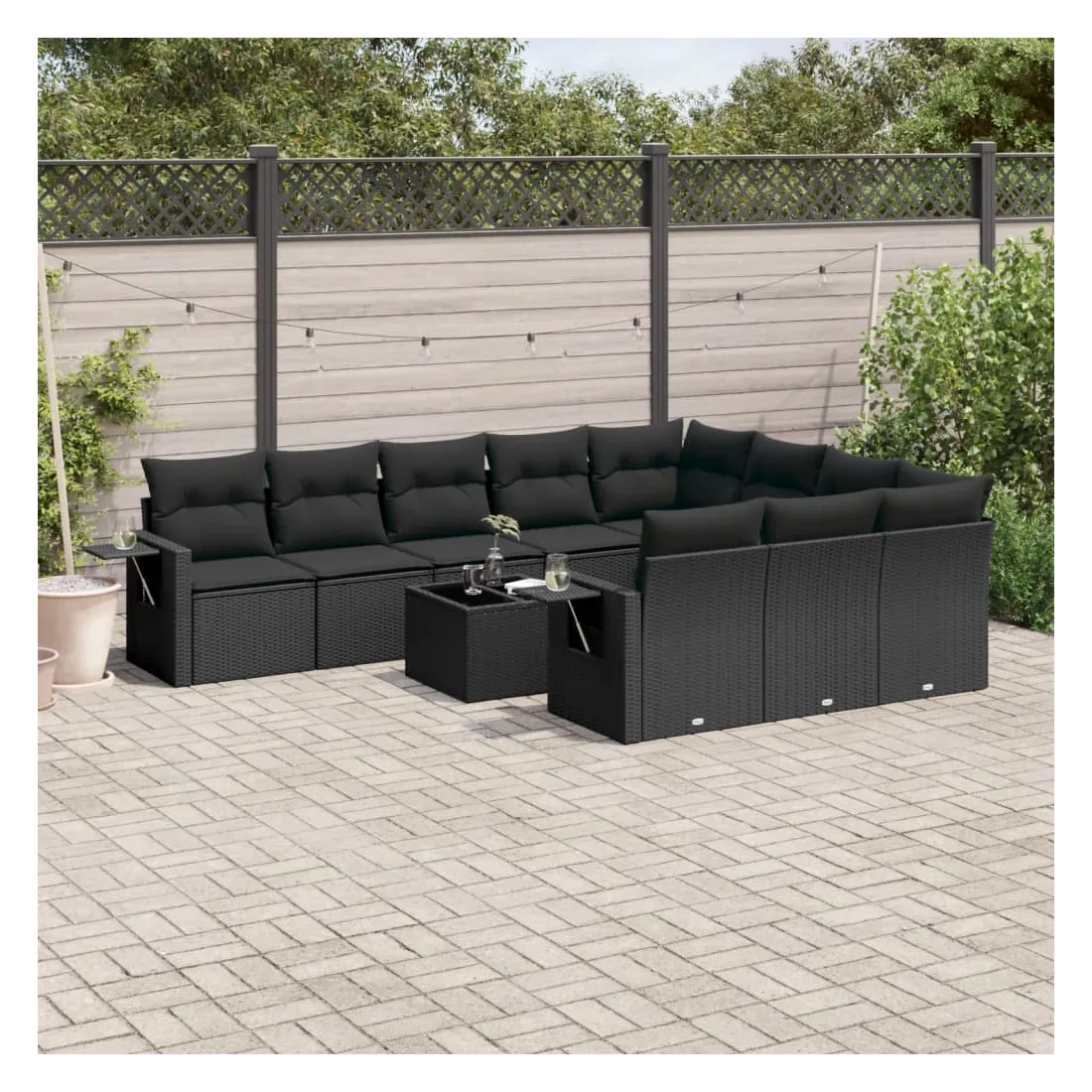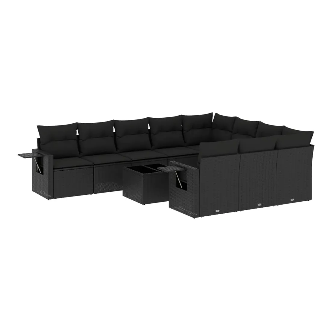 Salon de jardin 11 pcs avec coussins noir résine tressée