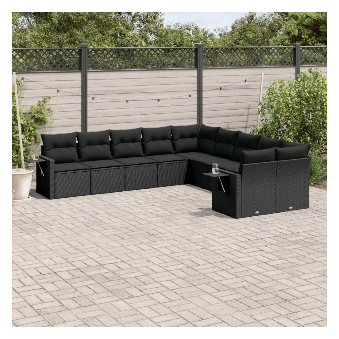 Salon de jardin 10 pcs avec coussins noir résine tressée