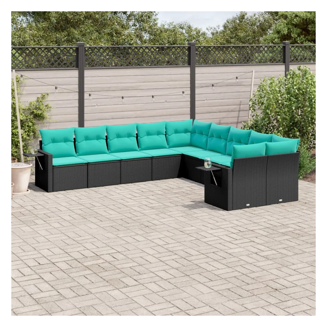 Salon de jardin 10 pcs avec coussins noir résine tressée