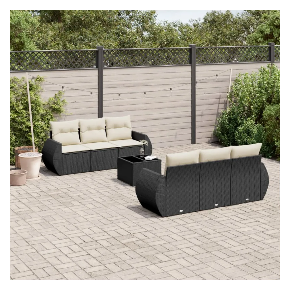 Cet ensemble de canapés de jardin est le complément parfait de votre arrière-cour, terrasse ou patio, offrant un espace confortable et accueillant pour discuter avec la famille et les amis ou simplement se détendre et profiter de l'extérieur. Matériau durable : la résine tressée, également connue sous le nom de poly rotin, est un matériau synthétique solide et nécessitant peu d'entretien qui ressemble au rotin naturel. Il est léger, facile à nettoyer et couramment utilisé pour les meubles d'extérieur en raison de sa durabilité et de ses propriétés de résistance aux intempéries.Dessus en verre : le dessus de la table d'extérieur est fabriqué en verre trempé solide et durable, ce qui le rend facile à nettoyer avec un chiffon humide et ajoute une touche d'élégance à votre espace extérieur. Expérience d'assise confortable : ce mobilier d'extérieur, doté de coussins épais, offre une expérience d'assise confortable. Housse amovible et lavable : ces coussins de siège sont dotés de housses amovibles pour un lavage et un entretien faciles.Conception modulaire : cet ensemble de meubles d'extérieur a une conception modulaire, ce qui le rend complètement flexible et facile à déplacer, afin que vous puissiez créer un agencement de meubles d'extérieur personnalisé. Bon à savoir :Pour que vos meubles d'extérieur restent beaux, nous vous recommandons de les protéger avec une housse imperméable.
