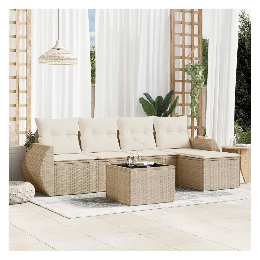 Cet ensemble de canapés de jardin est le complément parfait de votre arrière-cour, terrasse ou patio, offrant un espace confortable et accueillant pour discuter avec la famille et les amis ou simplement se détendre et profiter de l'extérieur. Matériau durable : la résine tressée, également connue sous le nom de poly rotin, est un matériau synthétique solide et nécessitant peu d'entretien qui ressemble au rotin naturel. Il est léger, facile à nettoyer et couramment utilisé pour les meubles d'extérieur en raison de sa durabilité et de ses propriétés de résistance aux intempéries.Dessus en verre : le dessus de la table d'extérieur est fabriqué en verre trempé solide et durable, ce qui le rend facile à nettoyer avec un chiffon humide et ajoute une touche d'élégance à votre espace extérieur. Expérience d'assise confortable : ce mobilier d'extérieur, doté de coussins épais, offre une expérience d'assise confortable.Housse amovible et lavable : ces coussins de siège sont dotés de housses amovibles pour un lavage et un entretien faciles.Conception modulaire : cet ensemble de meubles d'extérieur a une conception modulaire, ce qui le rend complètement flexible et facile à déplacer, afin que vous puissiez créer un agencement de meubles d'extérieur personnalisé. Bon à savoir :Pour que vos meubles d'extérieur restent beaux, nous vous recommandons de les protéger avec une housse imperméable.