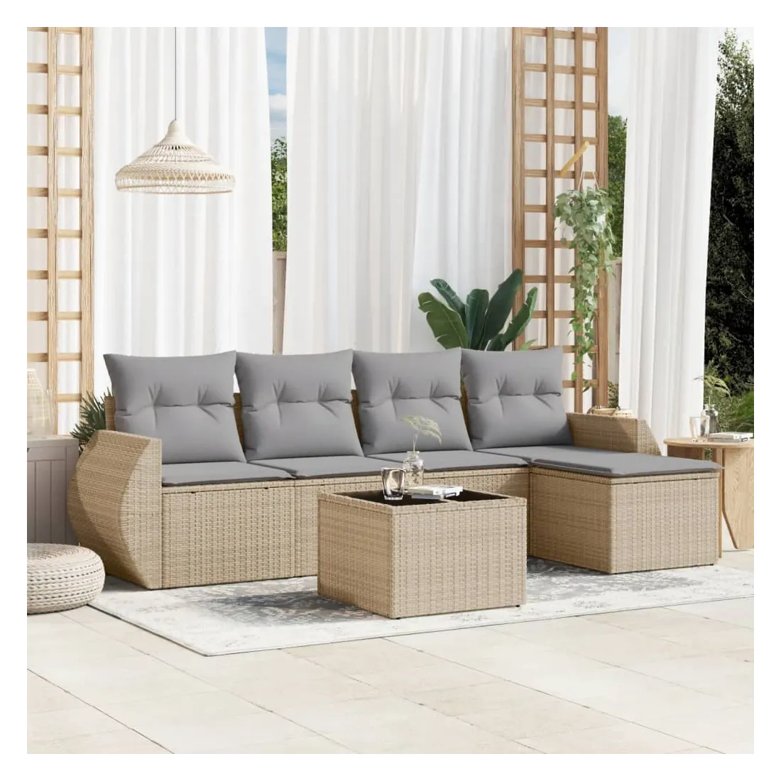 Cet ensemble de canapés de jardin est le complément parfait de votre arrière-cour, terrasse ou patio, offrant un espace confortable et accueillant pour discuter avec la famille et les amis ou simplement se détendre et profiter de l'extérieur. Matériau durable : la résine tressée, également connue sous le nom de poly rotin, est un matériau synthétique solide et nécessitant peu d'entretien qui ressemble au rotin naturel. Il est léger, facile à nettoyer et couramment utilisé pour les meubles d'extérieur en raison de sa durabilité et de ses propriétés de résistance aux intempéries.Dessus en verre : le dessus de la table d'extérieur est fabriqué en verre trempé solide et durable, ce qui le rend facile à nettoyer avec un chiffon humide et ajoute une touche d'élégance à votre espace extérieur. Expérience d'assise confortable : ce mobilier d'extérieur, doté de coussins épais, offre une expérience d'assise confortable.Housse amovible et lavable : ces coussins de siège sont dotés de housses amovibles pour un lavage et un entretien faciles.Conception modulaire : cet ensemble de meubles d'extérieur a une conception modulaire, ce qui le rend complètement flexible et facile à déplacer, afin que vous puissiez créer un agencement de meubles d'extérieur personnalisé. Bon à savoir :Pour que vos meubles d'extérieur restent beaux, nous vous recommandons de les protéger avec une housse imperméable.
