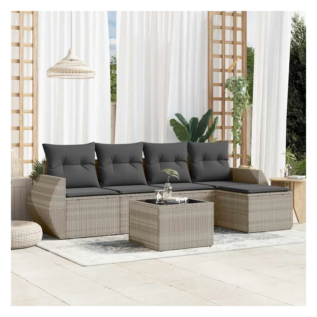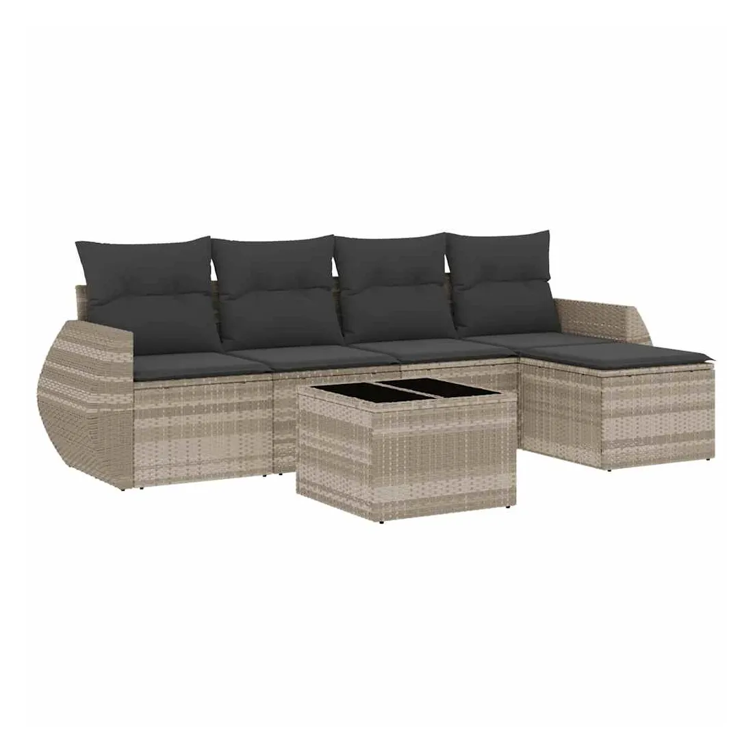 Cet ensemble de canapés de jardin est le complément parfait de votre arrière-cour, terrasse ou patio, offrant un espace confortable et accueillant pour discuter avec la famille et les amis ou simplement se détendre et profiter de l'extérieur. Matériau durable : la résine tressée, également connue sous le nom de poly rotin, est un matériau synthétique solide et nécessitant peu d'entretien qui ressemble au rotin naturel. Il est léger, facile à nettoyer et couramment utilisé pour les meubles d'extérieur en raison de sa durabilité et de ses propriétés de résistance aux intempéries.Dessus en verre : le dessus de la table d'extérieur est fabriqué en verre trempé solide et durable, ce qui le rend facile à nettoyer avec un chiffon humide et ajoute une touche d'élégance à votre espace extérieur. Expérience d'assise confortable : ce mobilier d'extérieur, doté de coussins épais, offre une expérience d'assise confortable.Housse amovible et lavable : ces coussins de siège sont dotés de housses amovibles pour un lavage et un entretien faciles.Conception modulaire : cet ensemble de meubles d'extérieur a une conception modulaire, ce qui le rend complètement flexible et facile à déplacer, afin que vous puissiez créer un agencement de meubles d'extérieur personnalisé. Bon à savoir :Pour que vos meubles d'extérieur restent beaux, nous vous recommandons de les protéger avec une housse imperméable.