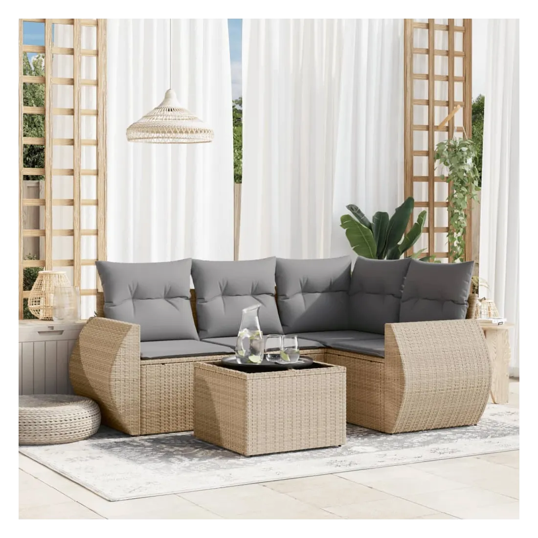 Cet ensemble de canapés de jardin est le complément parfait de votre arrière-cour, terrasse ou patio, offrant un espace confortable et accueillant pour discuter avec la famille et les amis ou simplement se détendre et profiter de l'extérieur. Matériau durable : la résine tressée, également connue sous le nom de poly rotin, est un matériau synthétique solide et nécessitant peu d'entretien qui ressemble au rotin naturel. Il est léger, facile à nettoyer et couramment utilisé pour les meubles d'extérieur en raison de sa durabilité et de ses propriétés de résistance aux intempéries.Dessus en verre : le dessus de la table d'extérieur est fabriqué en verre trempé solide et durable, ce qui le rend facile à nettoyer avec un chiffon humide et ajoute une touche d'élégance à votre espace extérieur. Expérience d'assise confortable : ce mobilier d'extérieur, doté de coussins épais, offre une expérience d'assise confortable.Housse amovible et lavable : ces coussins de siège sont dotés de housses amovibles pour un lavage et un entretien faciles.Conception modulaire : cet ensemble de meubles d'extérieur a une conception modulaire, ce qui le rend complètement flexible et facile à déplacer, afin que vous puissiez créer un agencement de meubles d'extérieur personnalisé. Bon à savoir :Pour que vos meubles d'extérieur restent beaux, nous vous recommandons de les protéger avec une housse imperméable.