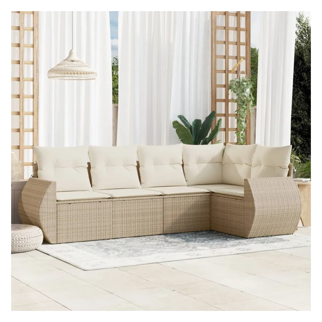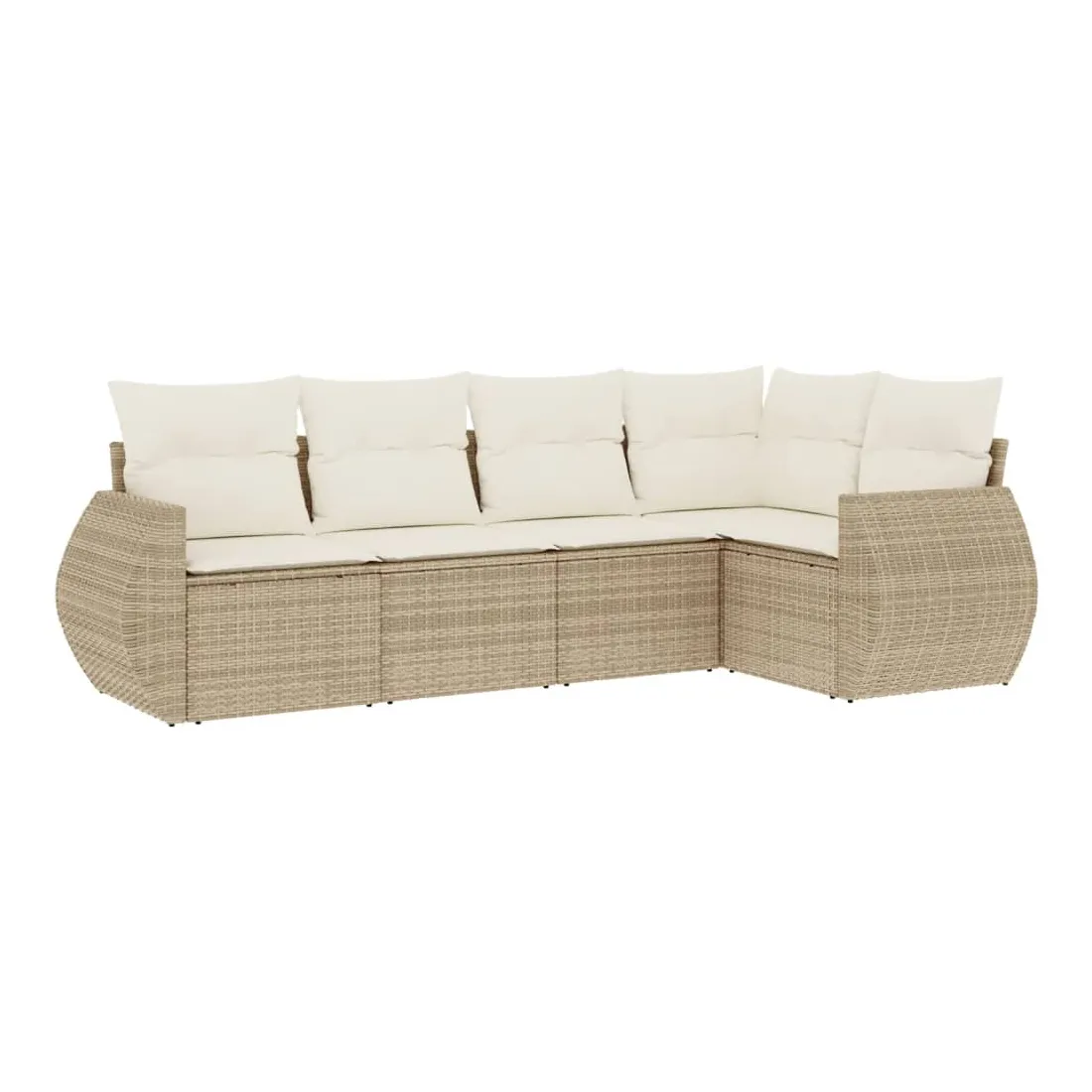 Salon de jardin avec coussins 5 pcs beige résine tressée