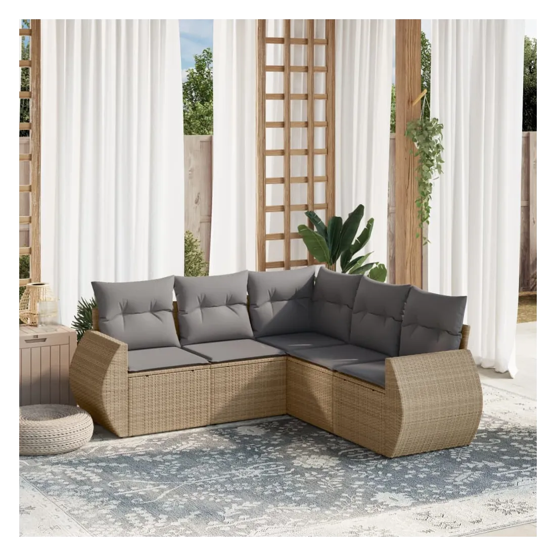 Salon de jardin avec coussins 5 pcs beige résine tressée