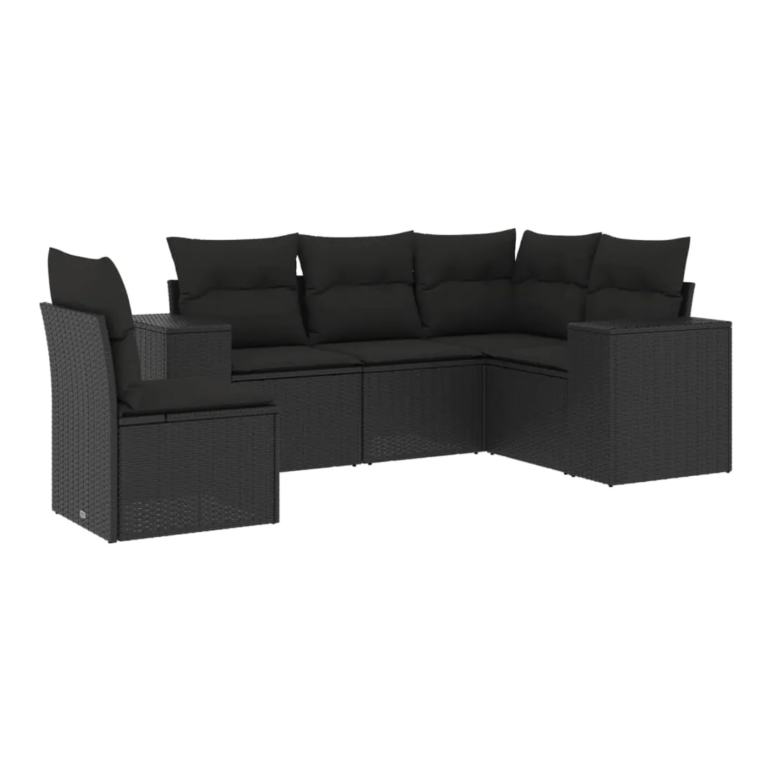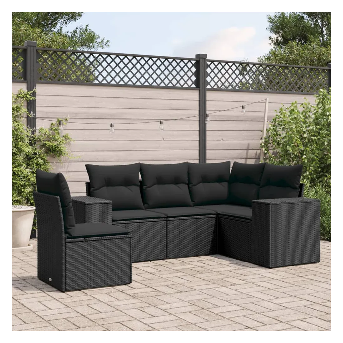 Salon de jardin 5 pcs avec coussins noir résine tressée