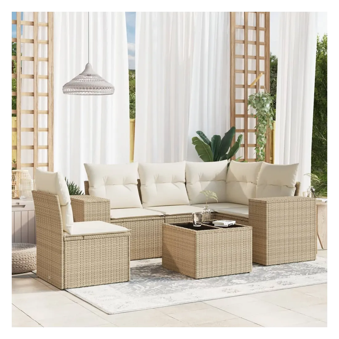 Cet ensemble de canapés de jardin est le complément parfait de votre arrière-cour, terrasse ou patio, offrant un espace confortable et accueillant pour discuter avec la famille et les amis ou simplement se détendre et profiter de l'extérieur. Matériau durable : la résine tressée, également connue sous le nom de poly rotin, est un matériau synthétique solide et nécessitant peu d'entretien qui ressemble au rotin naturel. Il est léger, facile à nettoyer et couramment utilisé pour les meubles d'extérieur en raison de sa durabilité et de ses propriétés de résistance aux intempéries.Expérience d'assise confortable : ce mobilier d'extérieur, doté de coussins épais, offre une expérience d'assise confortable.Dessus en verre : le dessus de la table d'extérieur est fabriqué en verre trempé solide et durable, ce qui le rend facile à nettoyer avec un chiffon humide et ajoute une touche d'élégance à votre espace extérieur.Housse amovible et lavable : ces coussins de siège sont dotés de housses amovibles pour un lavage et un entretien faciles.Conception modulaire : cet ensemble de meubles d'extérieur a une conception modulaire, ce qui le rend complètement flexible et facile à déplacer, afin que vous puissiez créer un agencement de meubles d'extérieur personnalisé. Bon à savoir :Pour que vos meubles d'extérieur restent beaux, nous vous recommandons de les protéger avec une housse imperméable.