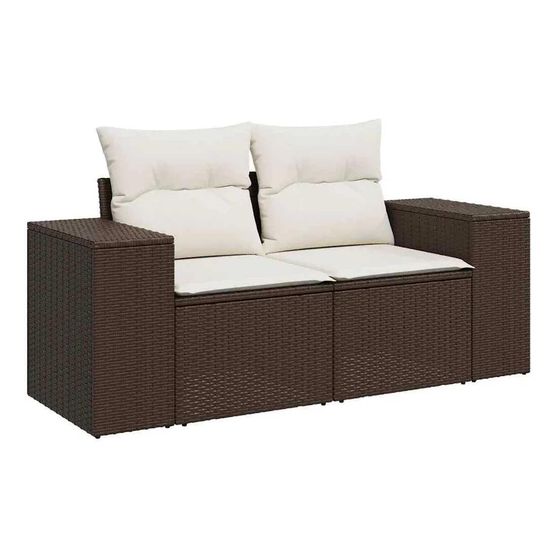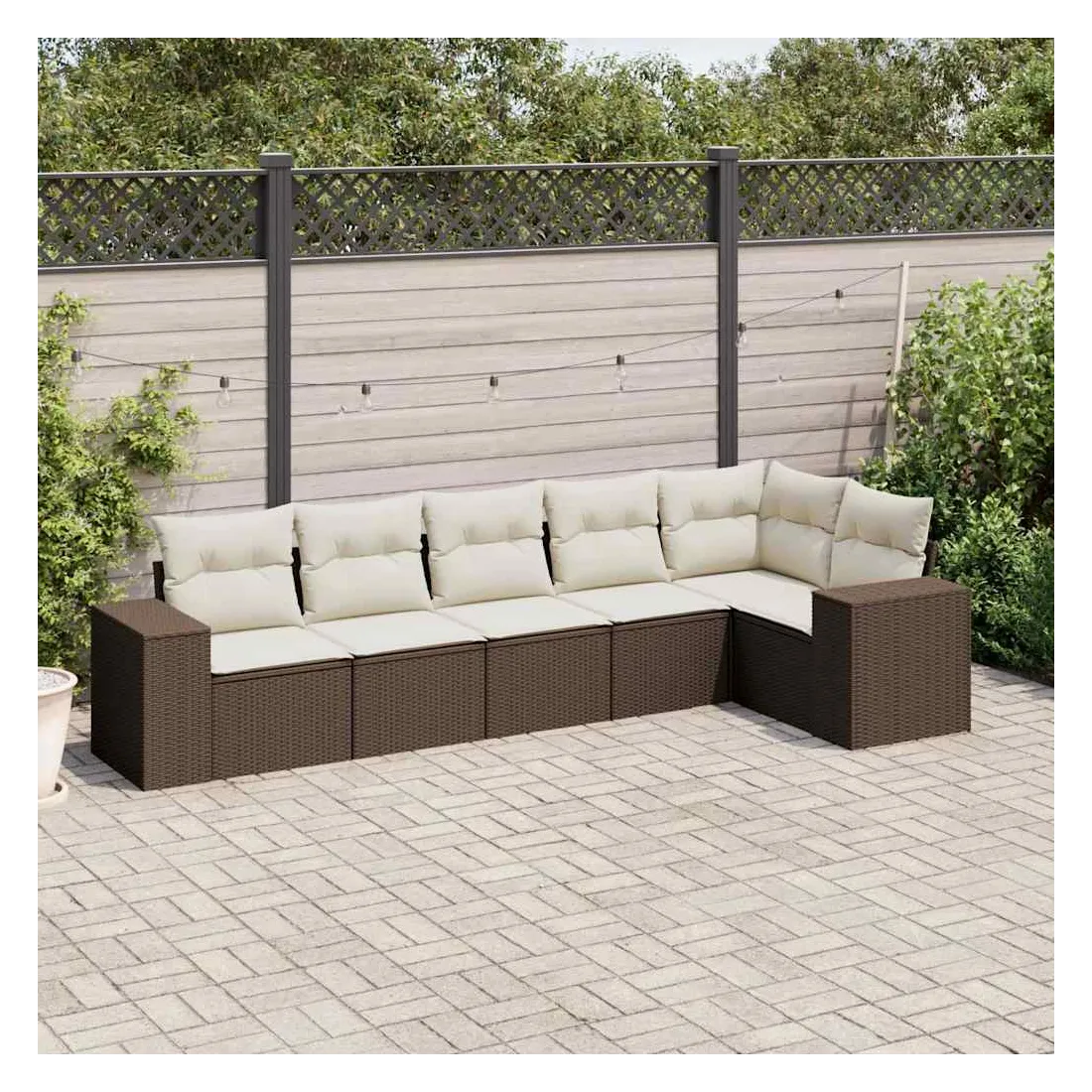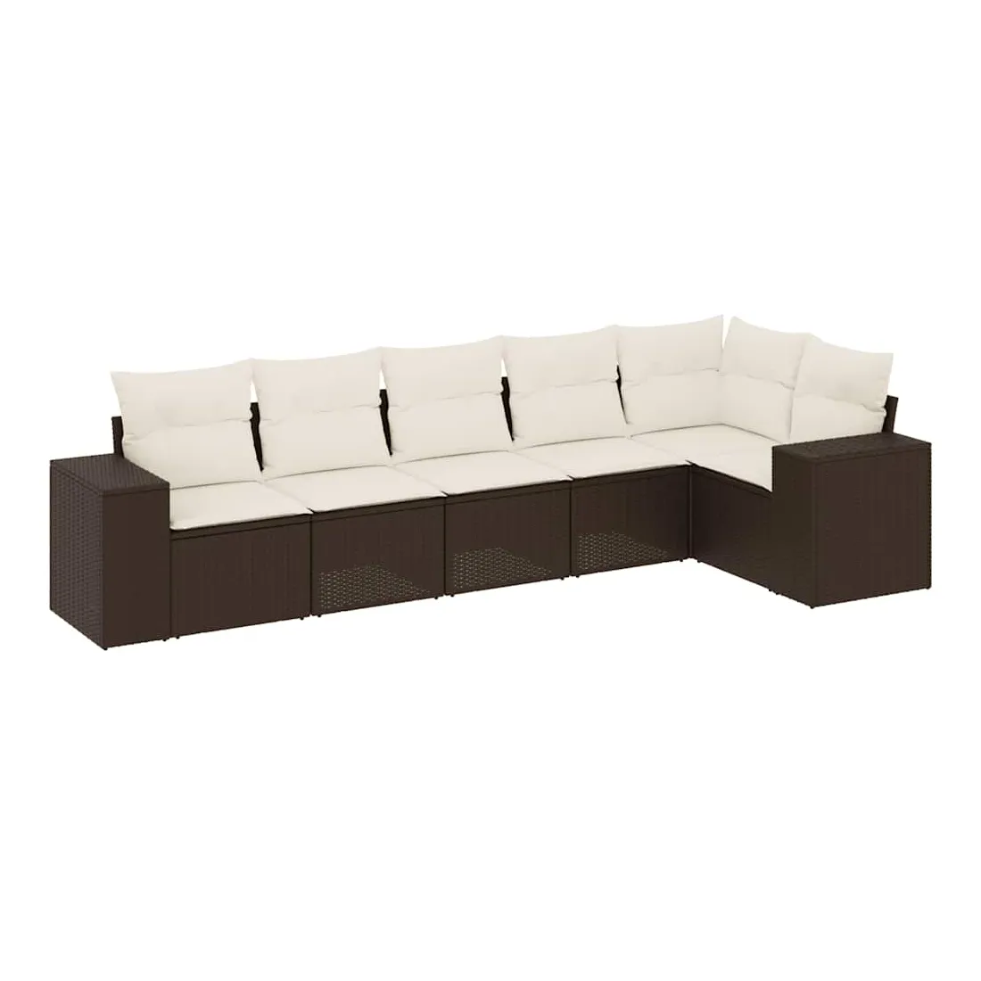 Salon de jardin avec coussins 6 pcs marron résine tressée