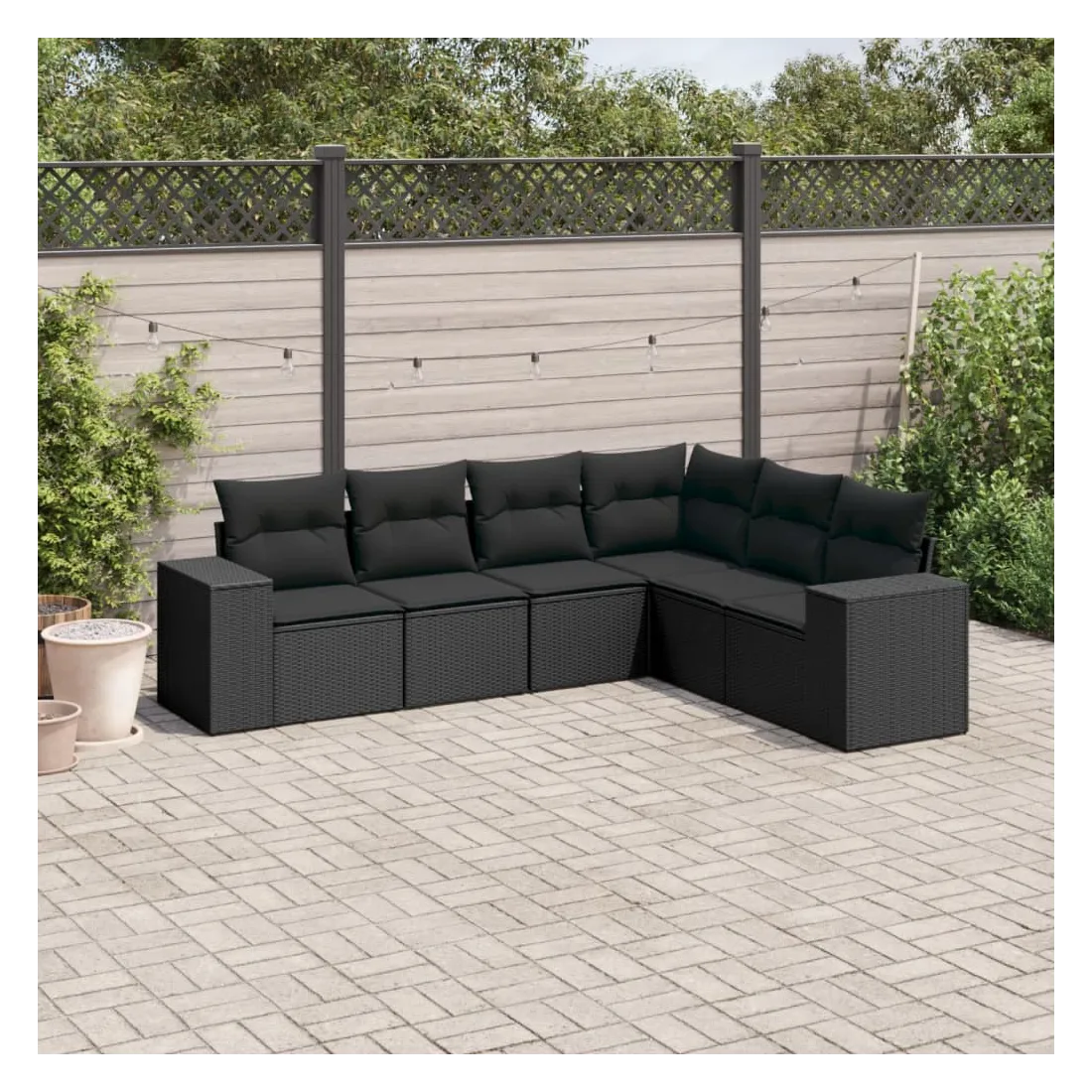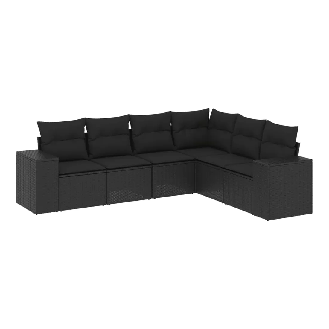 Salon de jardin 6 pcs avec coussins noir résine tressée