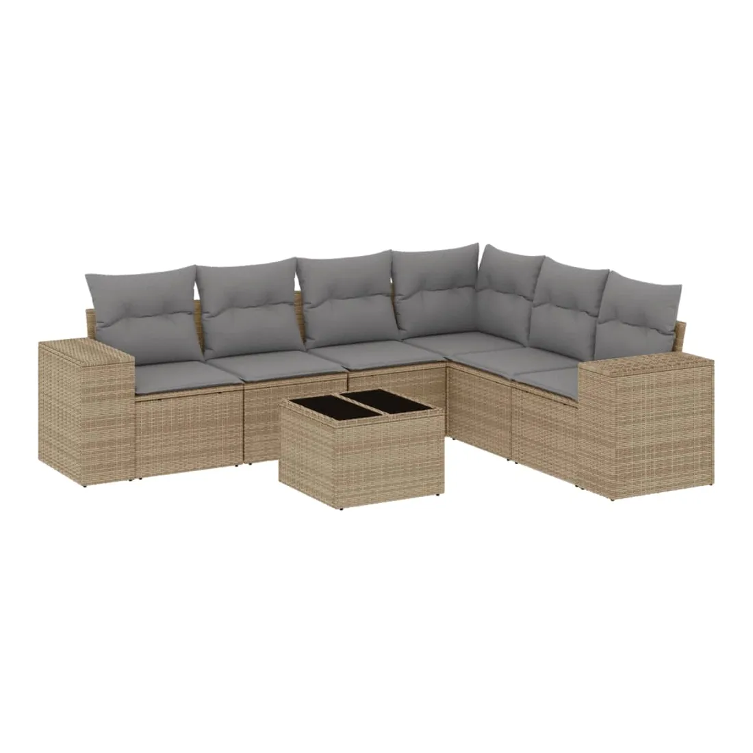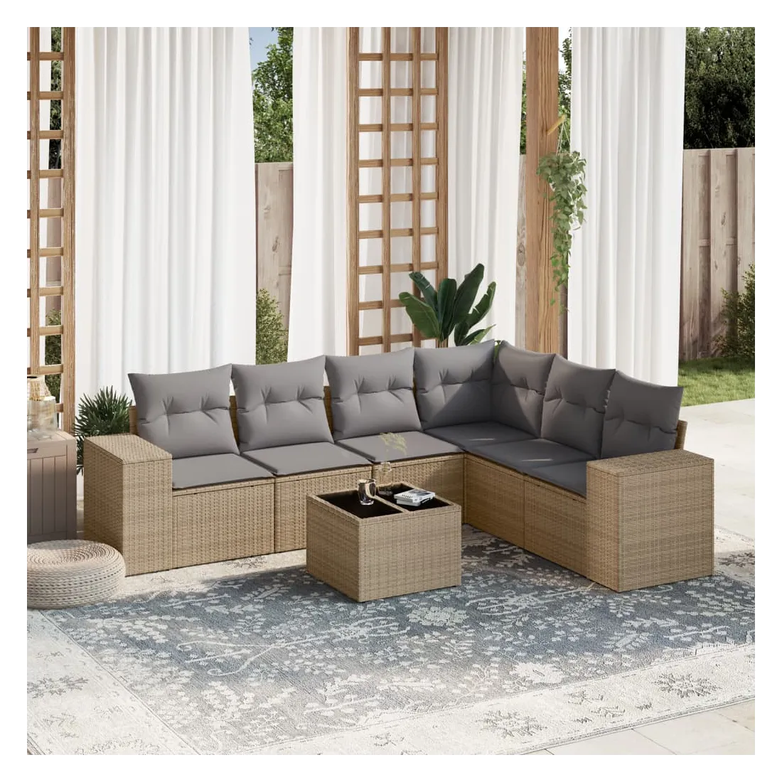 Salon de jardin avec coussins 7 pcs beige résine tressée