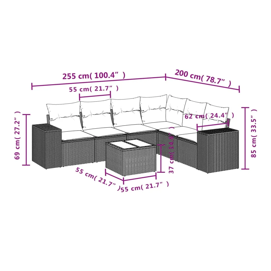 • Dimensions : 55 x 55 x 37 cm (L x l x H)