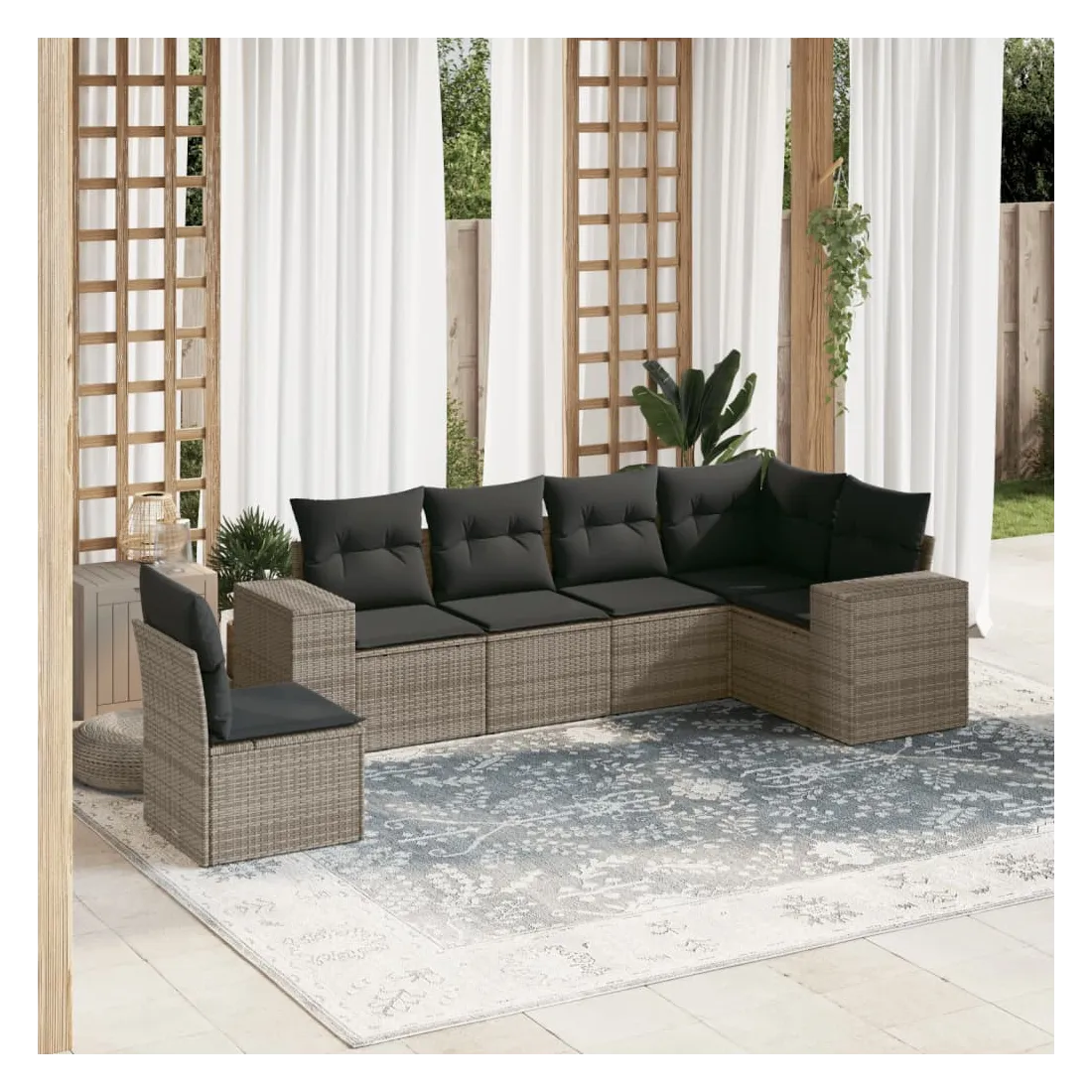 Cet ensemble de canapés de jardin est le complément parfait de votre arrière-cour, terrasse ou patio, offrant un espace confortable et accueillant pour discuter avec la famille et les amis ou simplement se détendre et profiter de l'extérieur. Matériau durable : la résine tressée, également connue sous le nom de poly rotin, est un matériau synthétique solide et nécessitant peu d'entretien qui ressemble au rotin naturel. Il est léger, facile à nettoyer et couramment utilisé pour les meubles d'extérieur en raison de sa durabilité et de ses propriétés de résistance aux intempéries.Expérience d'assise confortable : ce mobilier d'extérieur, doté de coussins épais, offre une expérience d'assise confortable.Housse amovible et lavable : ces coussins de siège sont dotés de housses amovibles pour un lavage et un entretien faciles.Conception modulaire : cet ensemble de meubles d'extérieur a une conception modulaire, ce qui le rend complètement flexible et facile à déplacer, afin que vous puissiez créer un agencement de meubles d'extérieur personnalisé. Bon à savoir :Pour que vos meubles d'extérieur restent beaux, nous vous recommandons de les protéger avec une housse imperméable.