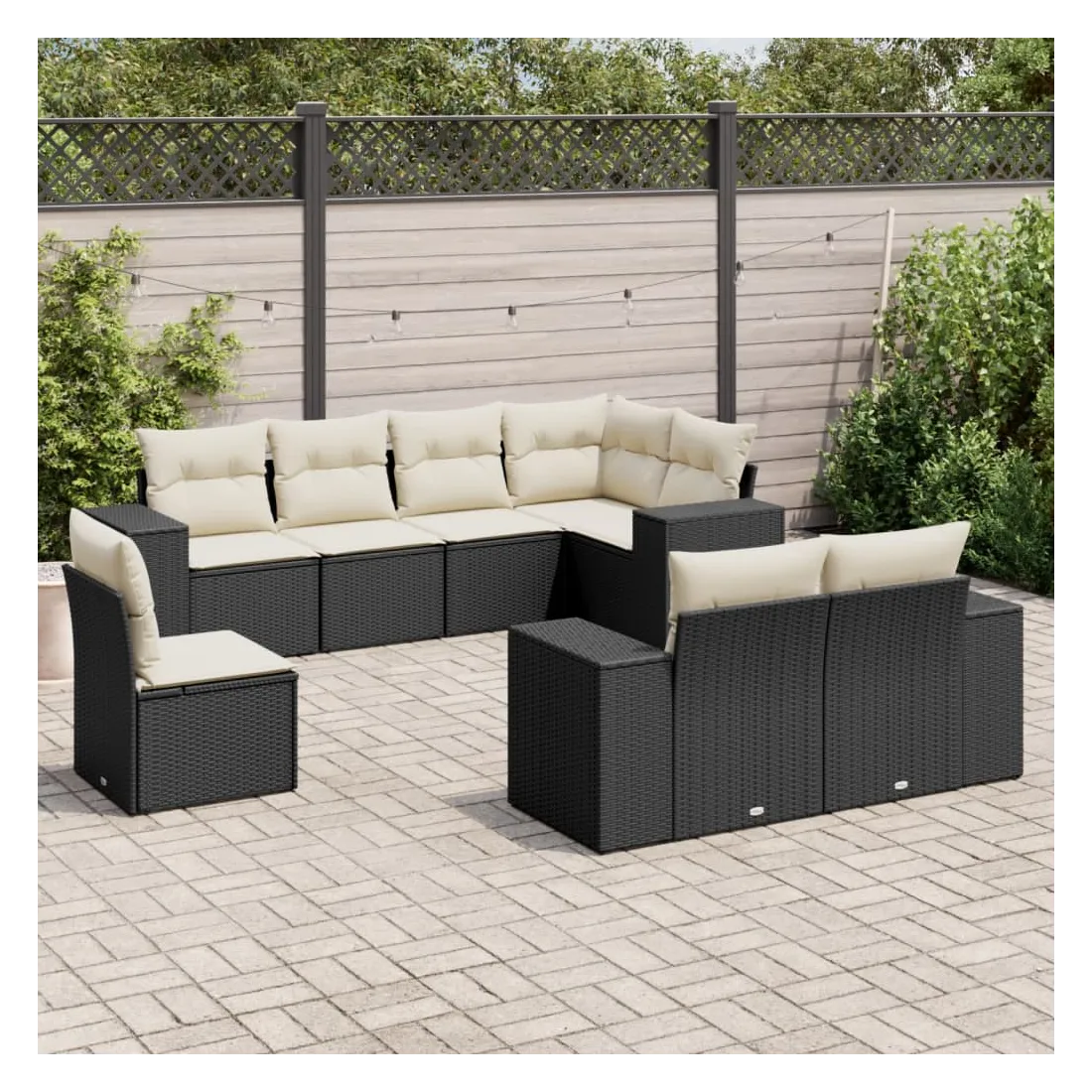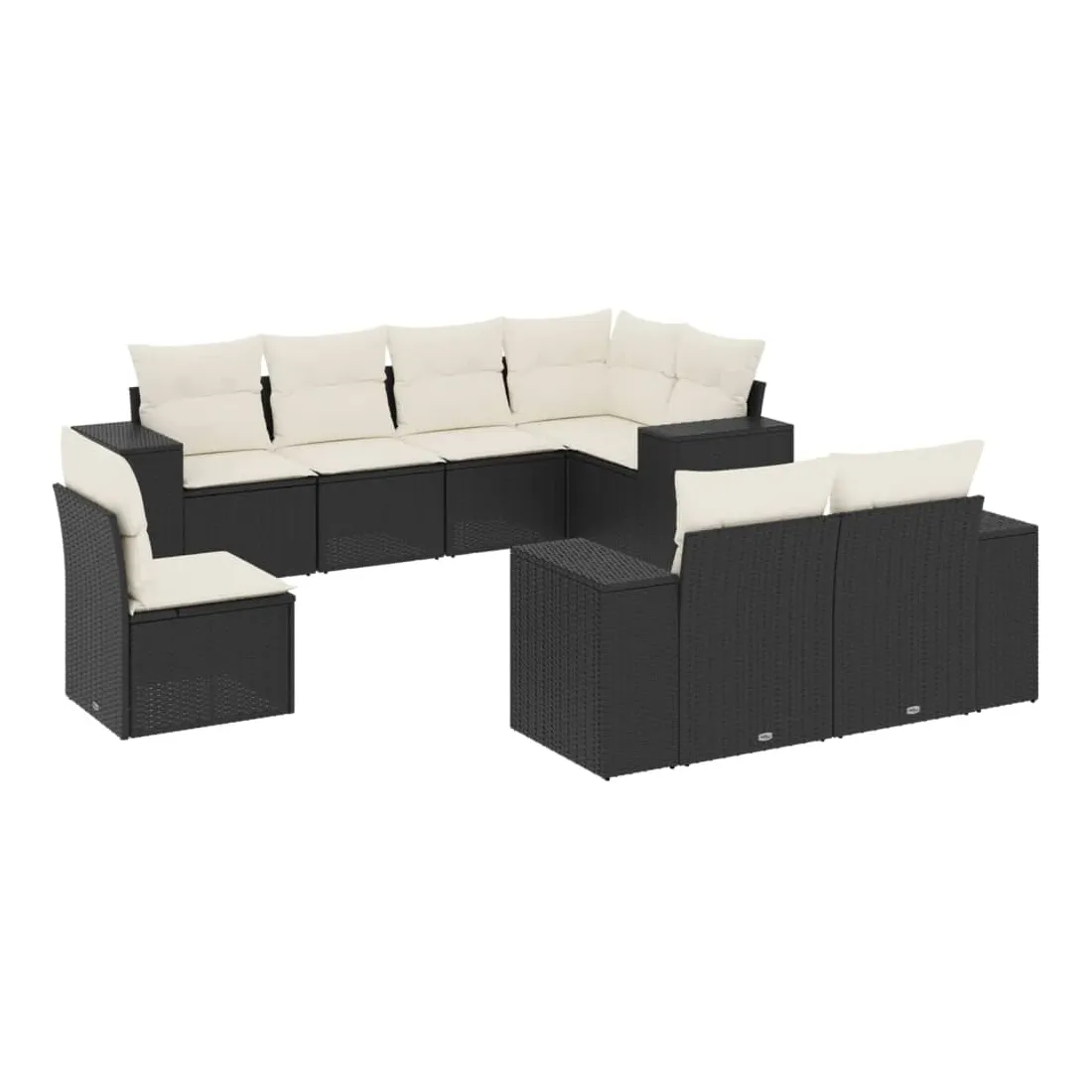 Salon de jardin 8 pcs avec coussins noir résine tressée