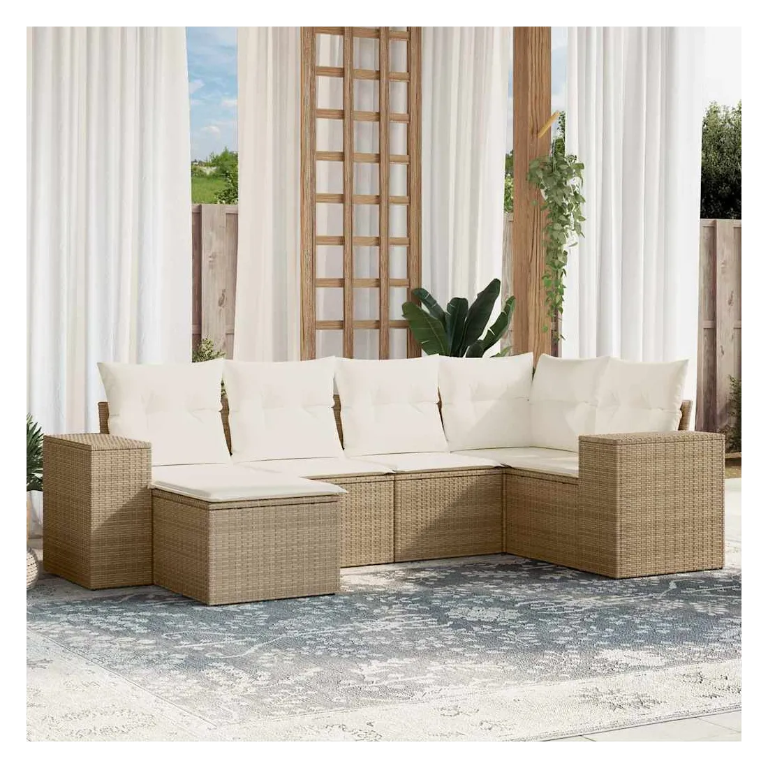 Cet ensemble de canapés de jardin est le complément parfait de votre arrière-cour, terrasse ou patio, offrant un espace confortable et accueillant pour discuter avec la famille et les amis ou simplement se détendre et profiter de l'extérieur. Matériau durable : la résine tressée, également connue sous le nom de poly rotin, est un matériau synthétique solide et nécessitant peu d'entretien qui ressemble au rotin naturel. Il est léger, facile à nettoyer et couramment utilisé pour les meubles d'extérieur en raison de sa durabilité et de ses propriétés de résistance aux intempéries.Expérience d'assise confortable : ce mobilier d'extérieur, doté de coussins épais, offre une expérience d'assise confortable.Housse amovible et lavable : ces coussins de siège sont dotés de housses amovibles pour un lavage et un entretien faciles.Conception modulaire : cet ensemble de meubles d'extérieur a une conception modulaire, ce qui le rend complètement flexible et facile à déplacer, afin que vous puissiez créer un agencement de meubles d'extérieur personnalisé. Bon à savoir :Pour que vos meubles d'extérieur restent beaux, nous vous recommandons de les protéger avec une housse imperméable.