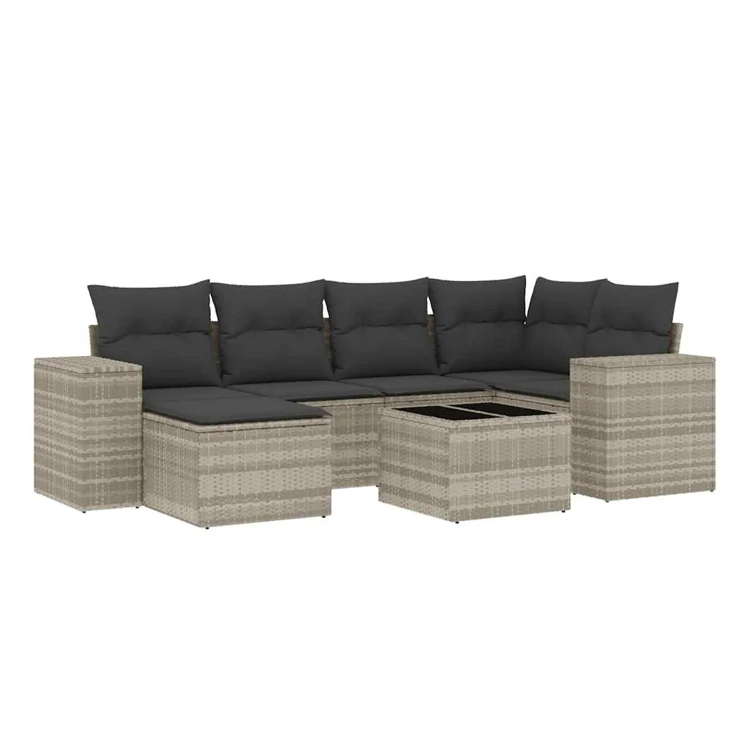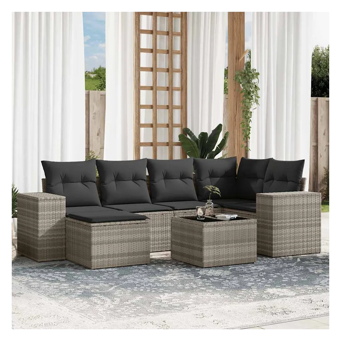 Cet ensemble de canapés de jardin est le complément parfait de votre arrière-cour, terrasse ou patio, offrant un espace confortable et accueillant pour discuter avec la famille et les amis ou simplement se détendre et profiter de l'extérieur. Matériau durable : la résine tressée, également connue sous le nom de poly rotin, est un matériau synthétique solide et nécessitant peu d'entretien qui ressemble au rotin naturel. Il est léger, facile à nettoyer et couramment utilisé pour les meubles d'extérieur en raison de sa durabilité et de ses propriétés de résistance aux intempéries.Expérience d'assise confortable : ce mobilier d'extérieur, doté de coussins épais, offre une expérience d'assise confortable.Dessus en verre : le dessus de la table d'extérieur est fabriqué en verre trempé solide et durable, ce qui le rend facile à nettoyer avec un chiffon humide et ajoute une touche d'élégance à votre espace extérieur.Housse amovible et lavable : ces coussins de siège sont dotés de housses amovibles pour un lavage et un entretien faciles.Conception modulaire : cet ensemble de meubles d'extérieur a une conception modulaire, ce qui le rend complètement flexible et facile à déplacer, afin que vous puissiez créer un agencement de meubles d'extérieur personnalisé. Bon à savoir :Pour que vos meubles d'extérieur restent beaux, nous vous recommandons de les protéger avec une housse imperméable.