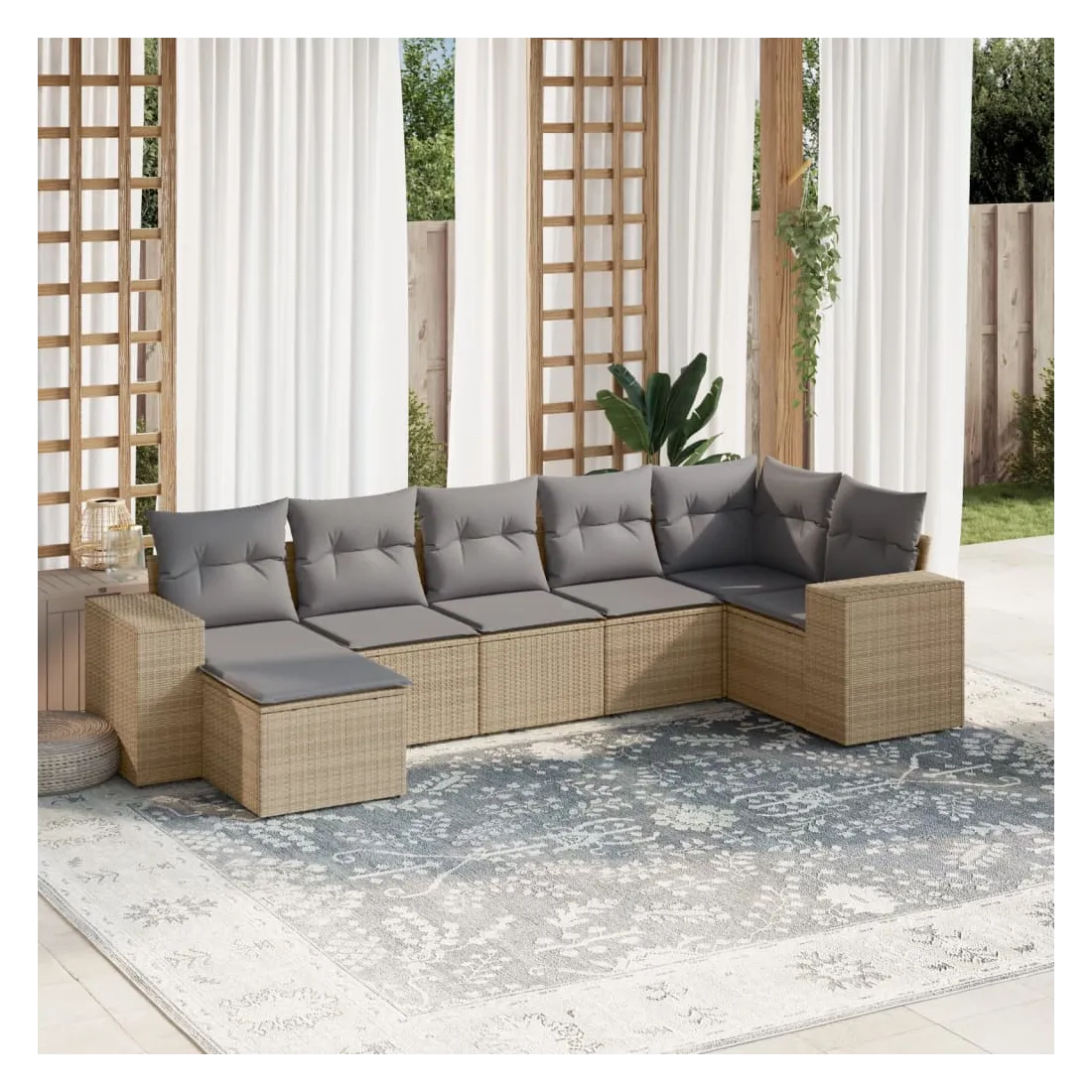 Salon de jardin avec coussins 7 pcs beige résine tressée