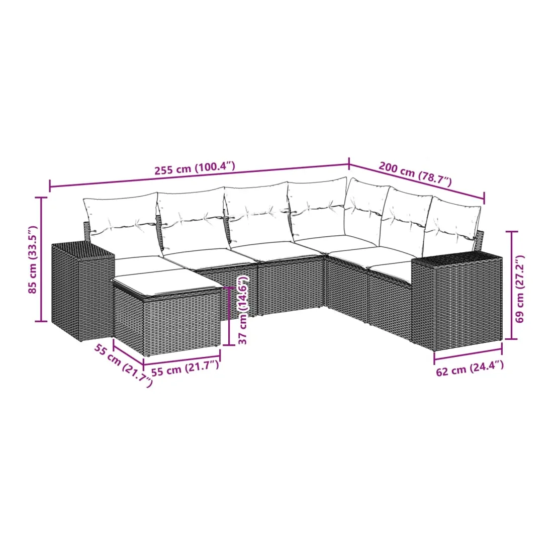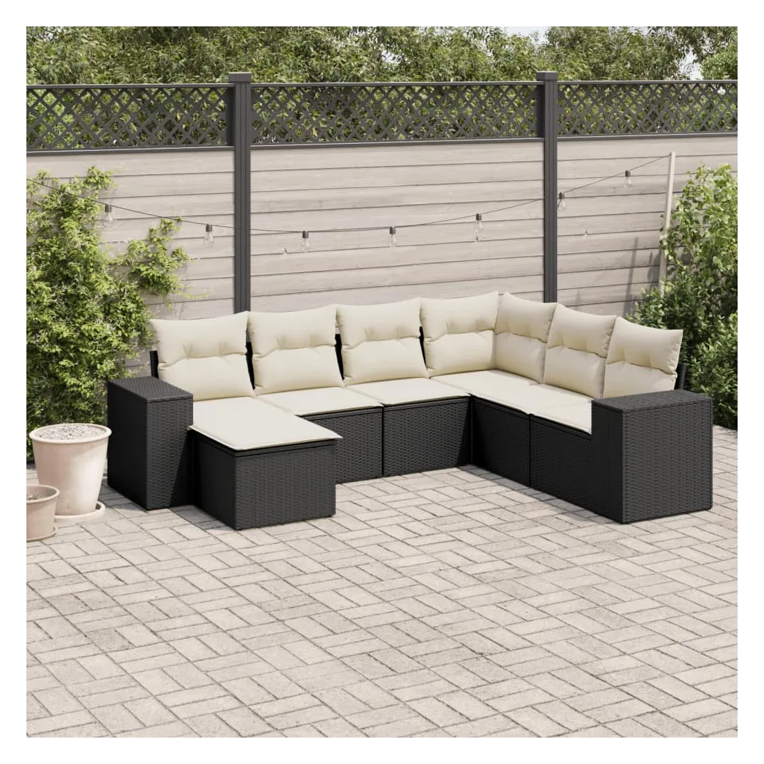 Cet ensemble de canapés de jardin est le complément parfait de votre arrière-cour, terrasse ou patio, offrant un espace confortable et accueillant pour discuter avec la famille et les amis ou simplement se détendre et profiter de l'extérieur. Matériau durable : la résine tressée, également connue sous le nom de poly rotin, est un matériau synthétique solide et nécessitant peu d'entretien qui ressemble au rotin naturel. Il est léger, facile à nettoyer et couramment utilisé pour les meubles d'extérieur en raison de sa durabilité et de ses propriétés de résistance aux intempéries.Expérience d'assise confortable : ce mobilier d'extérieur, doté de coussins épais, offre une expérience d'assise confortable.Housse amovible et lavable : ces coussins de siège sont dotés de housses amovibles pour un lavage et un entretien faciles.Conception modulaire : cet ensemble de meubles d'extérieur a une conception modulaire, ce qui le rend complètement flexible et facile à déplacer, afin que vous puissiez créer un agencement de meubles d'extérieur personnalisé. Bon à savoir :Pour que vos meubles d'extérieur restent beaux, nous vous recommandons de les protéger avec une housse imperméable.