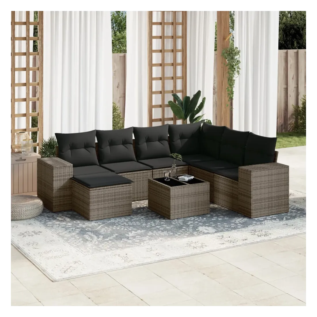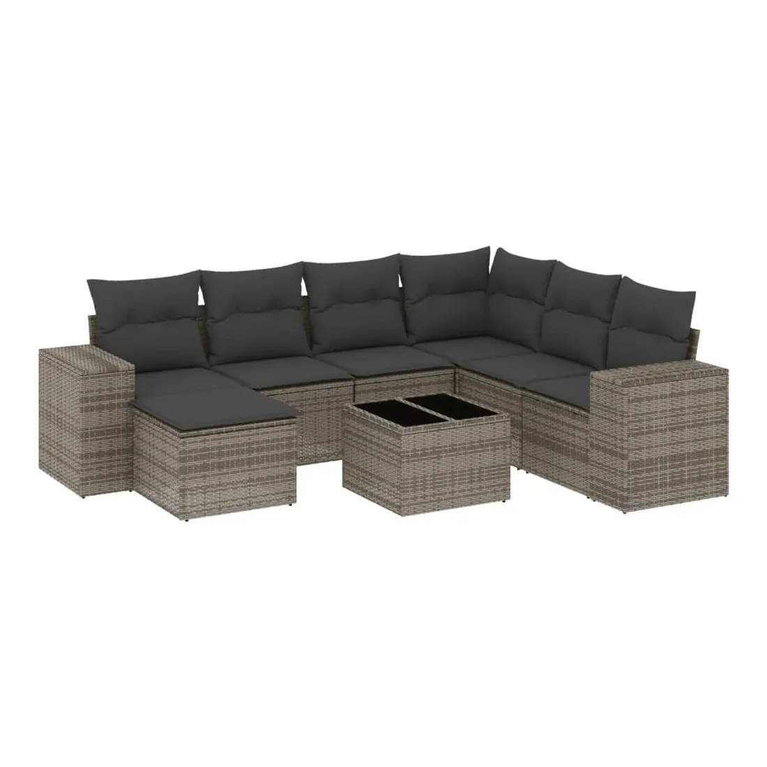 Salon de jardin 8 pcs avec coussins gris résine tressée