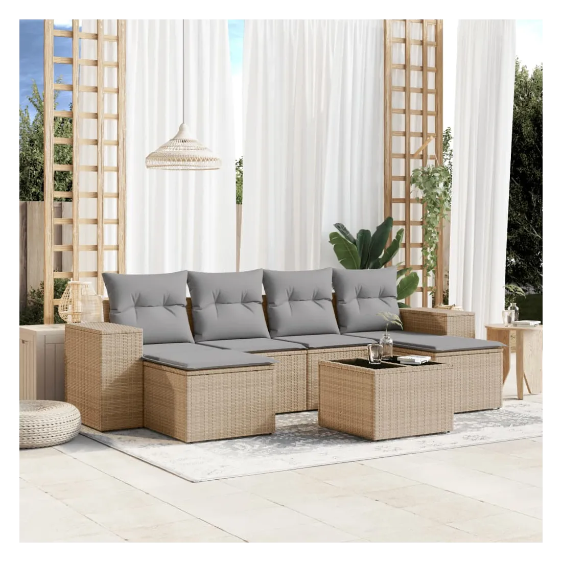Cet ensemble de canapés de jardin est le complément parfait de votre arrière-cour, terrasse ou patio, offrant un espace confortable et accueillant pour discuter avec la famille et les amis ou simplement se détendre et profiter de l'extérieur. Matériau durable : la résine tressée, également connue sous le nom de poly rotin, est un matériau synthétique solide et nécessitant peu d'entretien qui ressemble au rotin naturel. Il est léger, facile à nettoyer et couramment utilisé pour les meubles d'extérieur en raison de sa durabilité et de ses propriétés de résistance aux intempéries.Expérience d'assise confortable : ce mobilier d'extérieur, doté de coussins épais, offre une expérience d'assise confortable.Dessus en verre : le dessus de la table d'extérieur est fabriqué en verre trempé solide et durable, ce qui le rend facile à nettoyer avec un chiffon humide et ajoute une touche d'élégance à votre espace extérieur.Housse amovible et lavable : ces coussins de siège sont dotés de housses amovibles pour un lavage et un entretien faciles.Conception modulaire : cet ensemble de meubles d'extérieur a une conception modulaire, ce qui le rend complètement flexible et facile à déplacer, afin que vous puissiez créer un agencement de meubles d'extérieur personnalisé. Bon à savoir :Pour que vos meubles d'extérieur restent beaux, nous vous recommandons de les protéger avec une housse imperméable.
