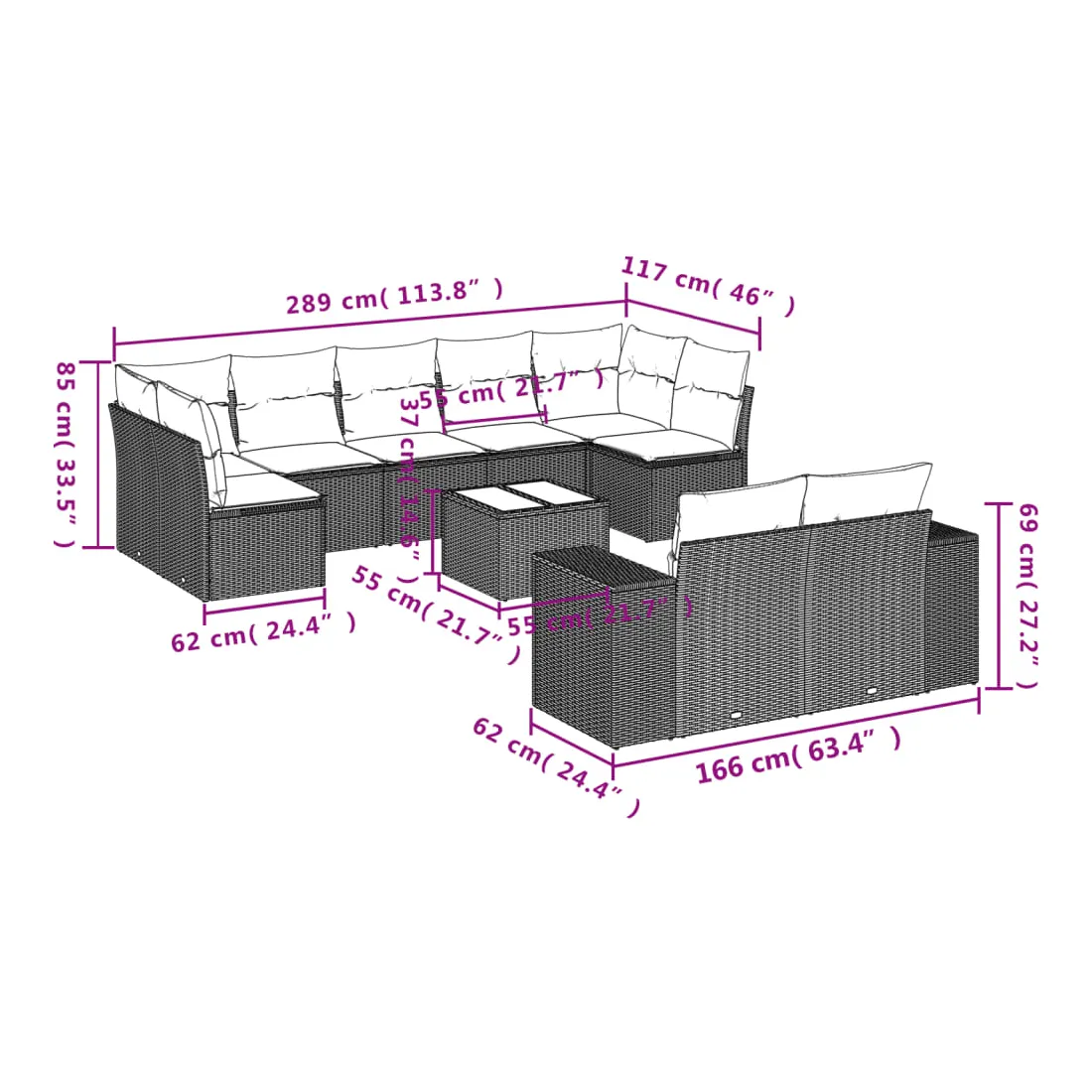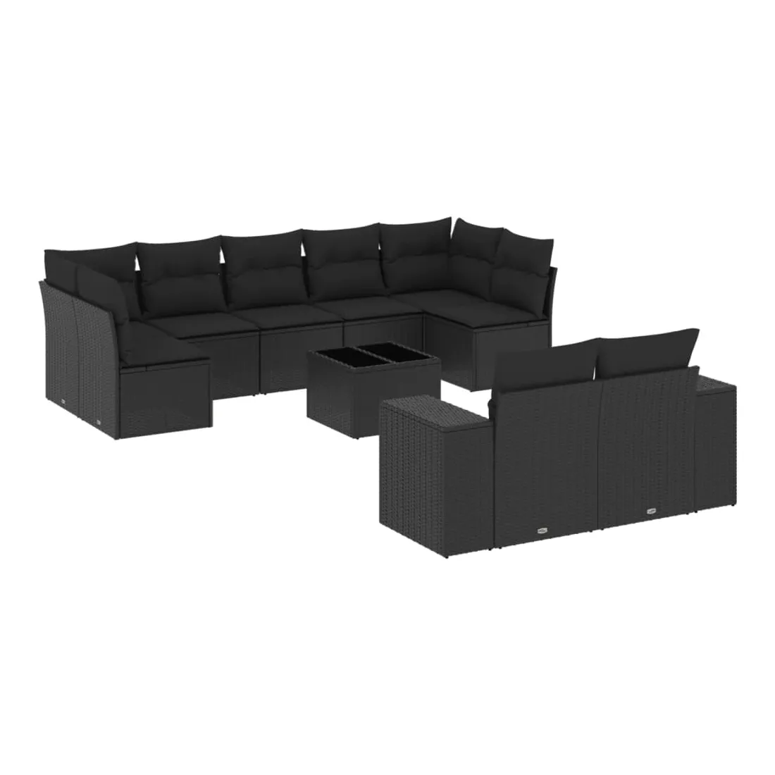 Salon de jardin 10 pcs avec coussins noir résine tressée