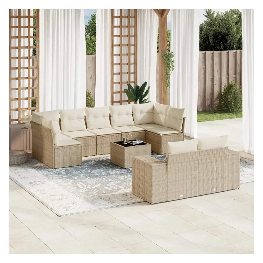 Salon de jardin avec coussins 10 pcs beige résine tressée