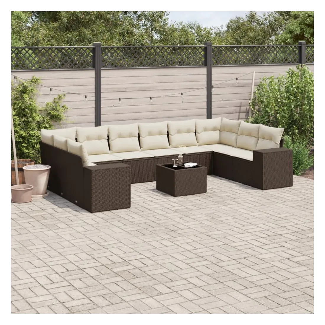 Cet ensemble de canapés de jardin est le complément parfait de votre arrière-cour, terrasse ou patio, offrant un espace confortable et accueillant pour discuter avec la famille et les amis ou simplement se détendre et profiter de l'extérieur. Matériau durable : la résine tressée, également connue sous le nom de poly rotin, est un matériau synthétique solide et nécessitant peu d'entretien qui ressemble au rotin naturel. Il est léger, facile à nettoyer et couramment utilisé pour les meubles d'extérieur en raison de sa durabilité et de ses propriétés de résistance aux intempéries.Expérience d'assise confortable : ce mobilier d'extérieur, doté de coussins épais, offre une expérience d'assise confortable.Dessus en verre : le dessus de la table d'extérieur est fabriqué en verre trempé solide et durable, ce qui le rend facile à nettoyer avec un chiffon humide et ajoute une touche d'élégance à votre espace extérieur.Housse amovible et lavable : ces coussins de siège sont dotés de housses amovibles pour un lavage et un entretien faciles.Conception modulaire : cet ensemble de meubles d'extérieur a une conception modulaire, ce qui le rend complètement flexible et facile à déplacer, afin que vous puissiez créer un agencement de meubles d'extérieur personnalisé. Bon à savoir :Pour que vos meubles d'extérieur restent beaux, nous vous recommandons de les protéger avec une housse imperméable.