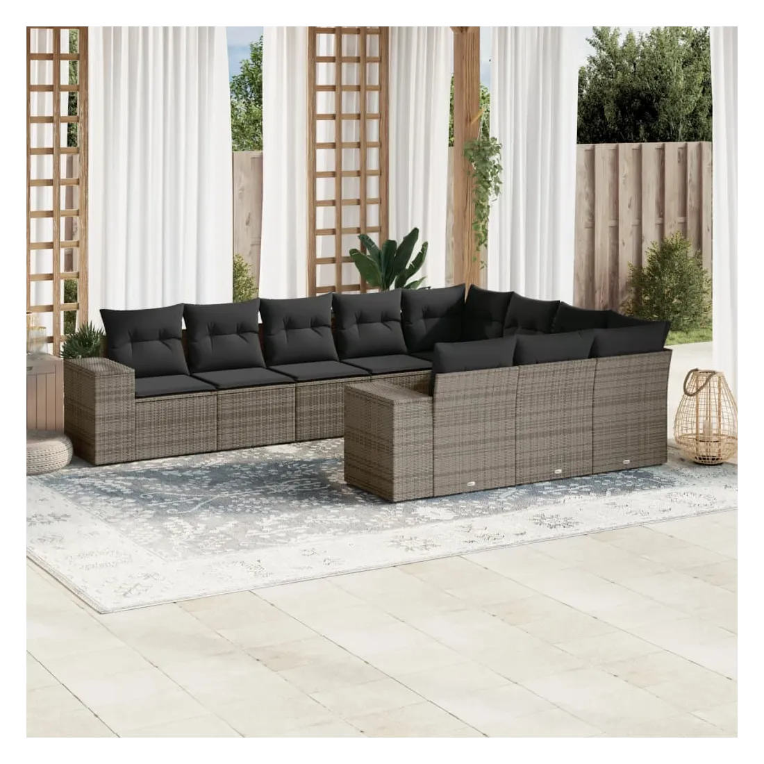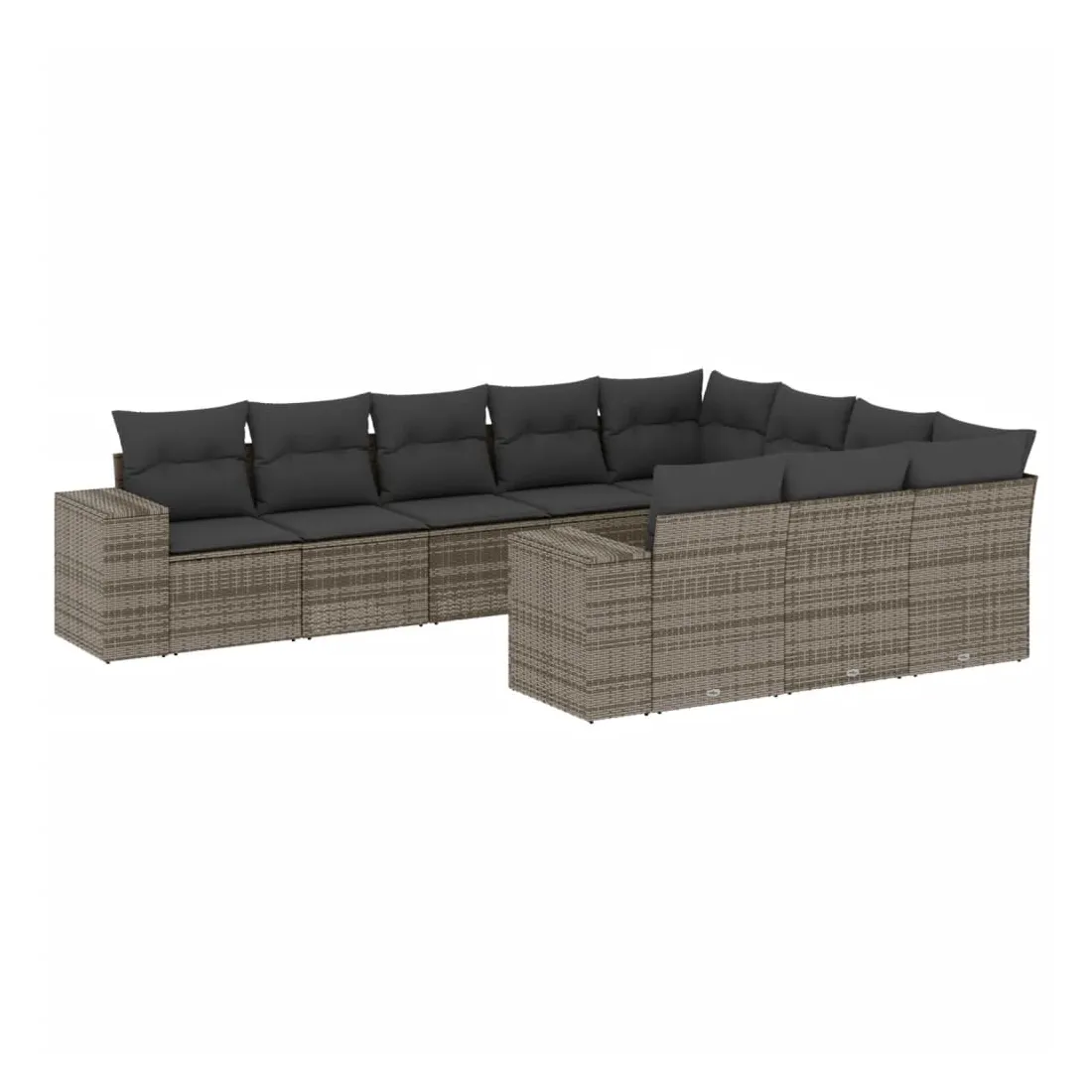 Salon de jardin avec coussins 10 pcs gris résine tressée